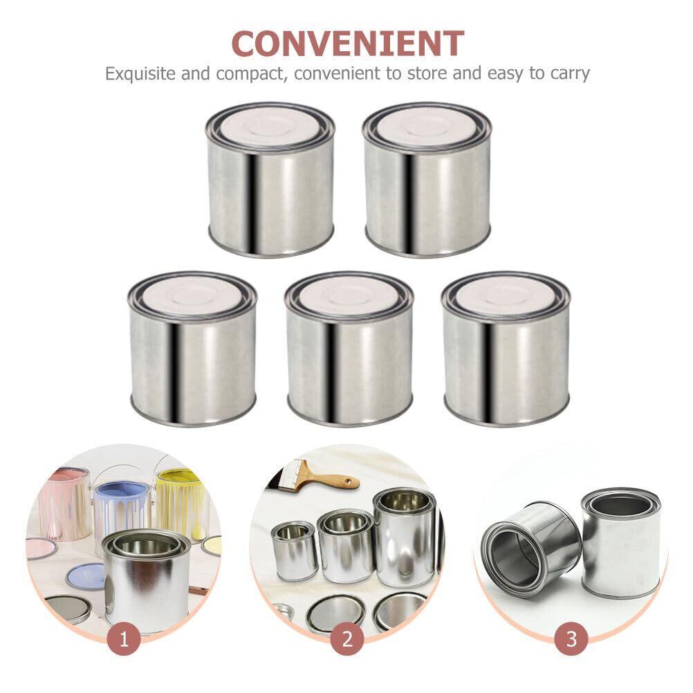 LEDMOMO ブリキ製ペール缶 0.4L 5個セット フタ付き 丸型金属バケツ 塗料収納や塗装作業に便利なコンパクトペイントバケツ