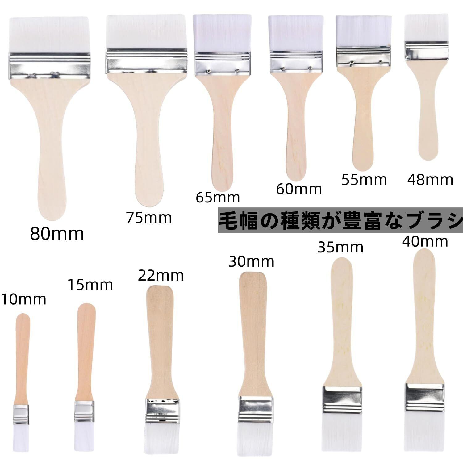 【素材】ブラシの毛は上質なナイロンを採用しており、適度なコシ感があり、抜け落ちたり変形したりしにくいです。ステンレス製のフェルールがブラシの毛をしっかりと固定し、抜け落ちにくくします。さまざまな塗装用途に適しています。