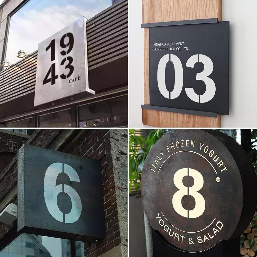 【幅広い用途】:ステンシルは、住所ペイントやDIY落書きに適用でき、住所番号ステンシル、郵便受け番号、ドア、窓、道路、駐車場、結婚式のテーブル、車、黒板、段ボール箱、広告ボードなどに番号をペイントするためのとして使用できます。駐車場や看板などの番号塗装が簡単にDIY出来る数字ステンシルシートセットです。