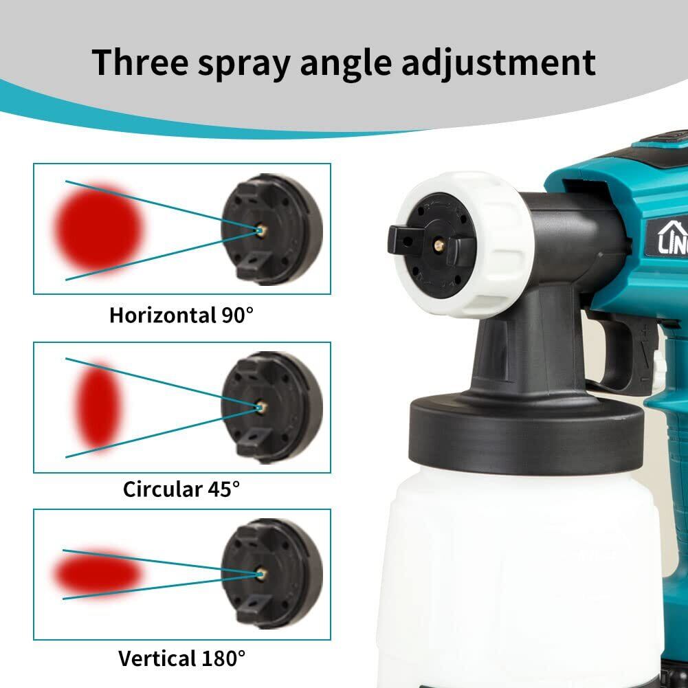 【ブラシレスモーター&調節可能な流れ】アップグレードされたブラシレスモーターは、最大1,000ml/分の高速スプレーが可能で、最大粘度は120DINです。 フローコントロールノブを調整して流量を調整し、さまざまなスプレー効果を実現し、作業をより速く完了させます。