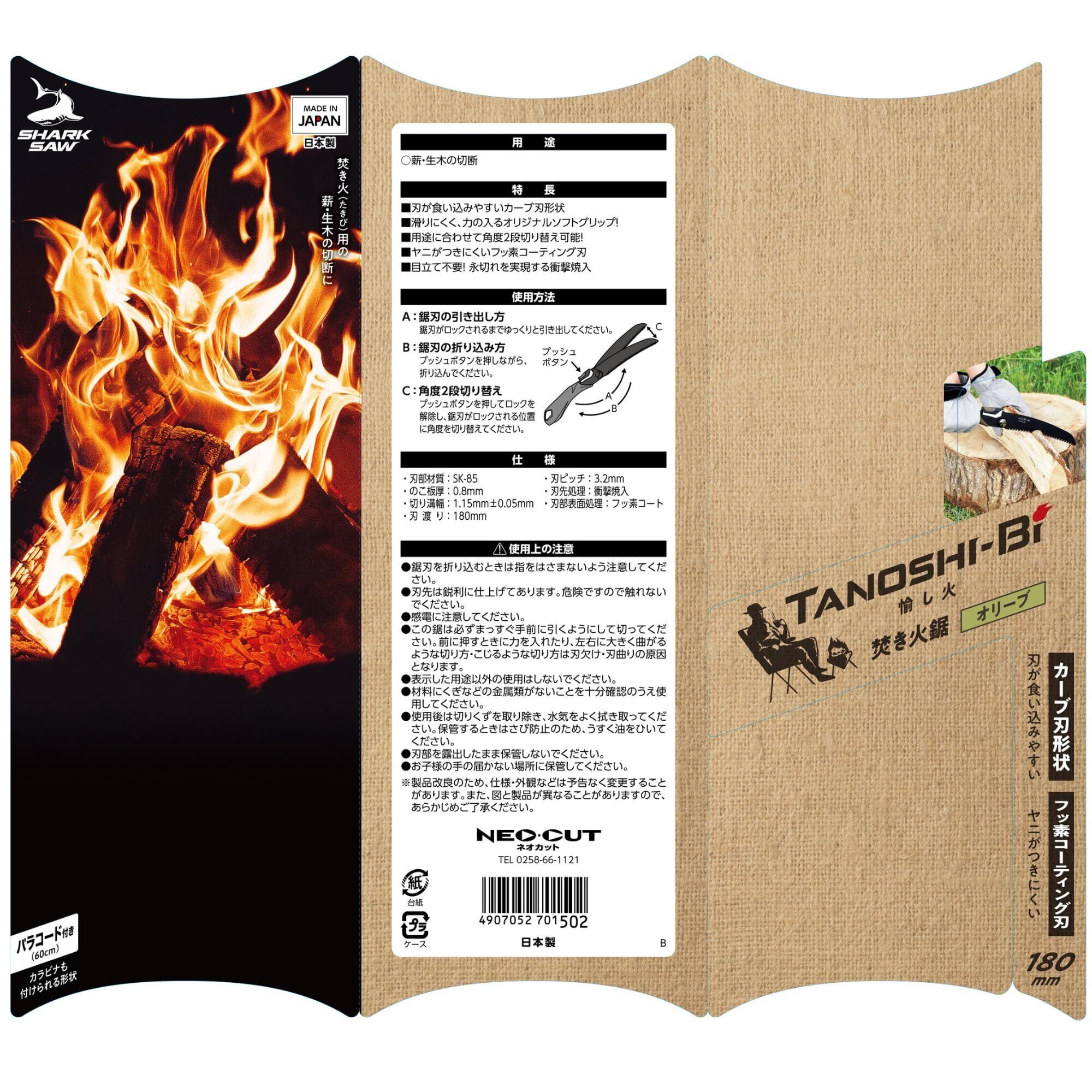 高儀(Takagi) シャークソー 愉し火 焚き火鋸 カーブ刃 ノコギリ のこぎり 鋸 薪ストーブ 日本製 折り畳み式 目立不要の衝撃焼入 小型 キャンプ アウトドア オリーブ 180mm