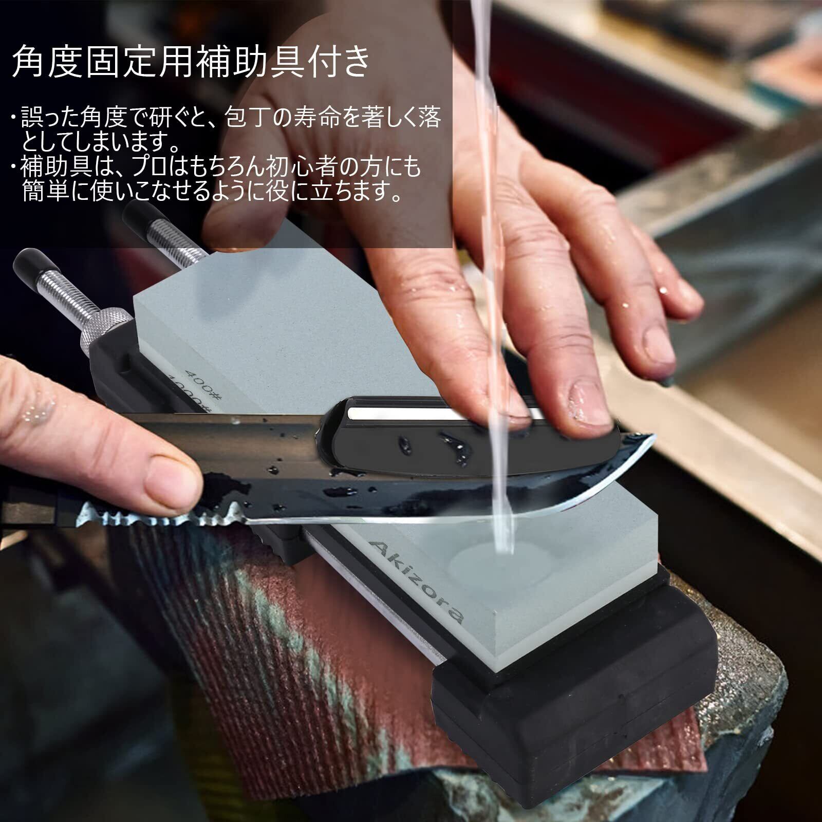 Akizora 砥石 包丁研ぎ石 400 1000 2000 6000 両面 万能砥石台付き 面直し 角度固定ホルダー付き 家庭用荒砥石 中砥石 包丁研ぎに最適