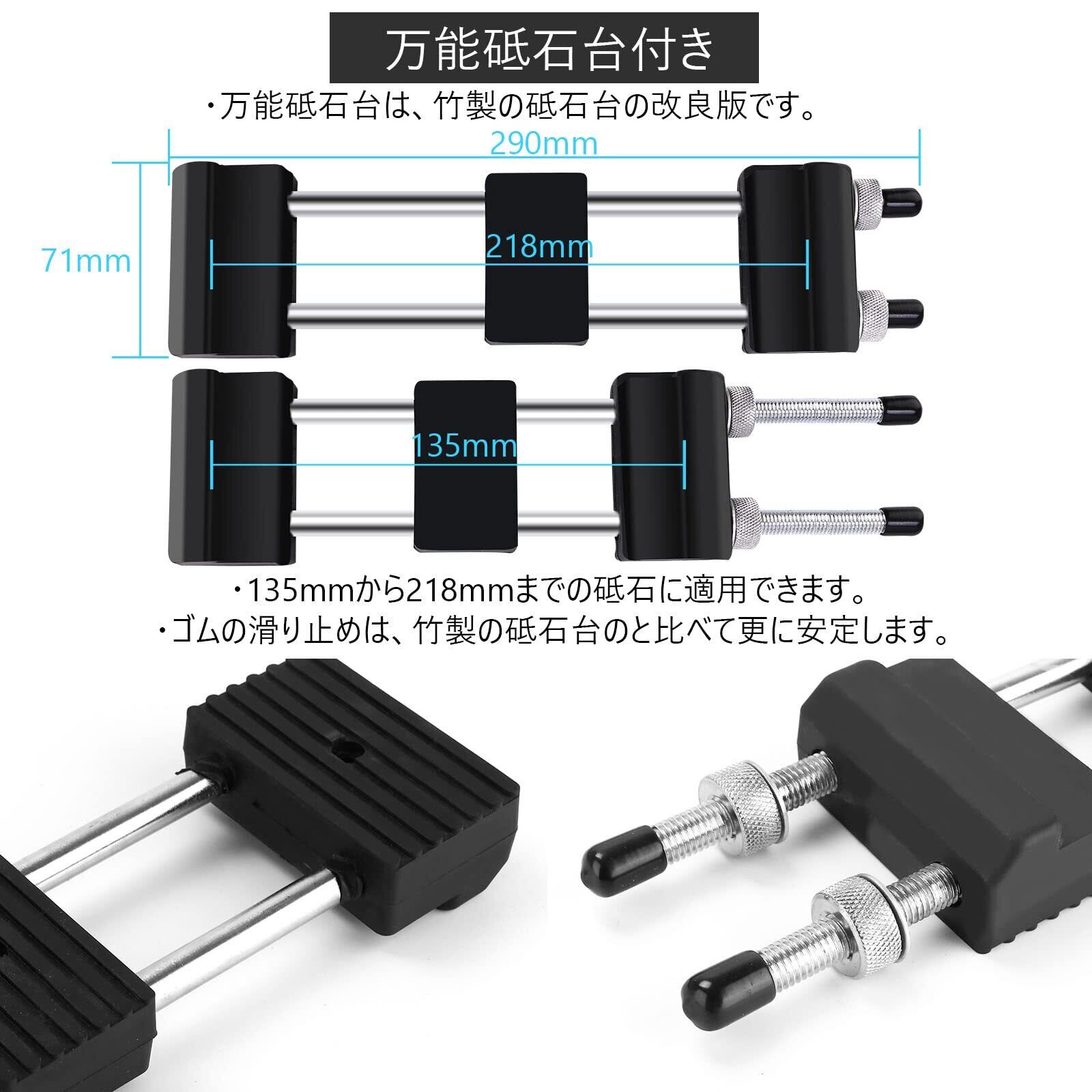 【初心者プロ向き】:この研ぎ石は、角度固定用刀補助具付きのでプロはもちろん、初心者の方でも簡単に使いこなせる。または、万能砥石台つきので、従来のゴムの滑り止めと比べ、研いでいる最中に包丁が手元からずれて大事故になるのを防げます。とても安心てきます。※重要事項※本砥石台は、当社オリジナル商品となっており、コピー対策として外観の意匠登録申請済みです(意匠第1747826号)。