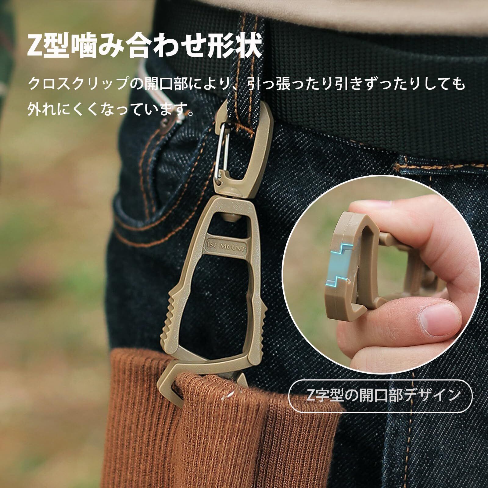 【ポイント1ーZ型噛み合わせ形状】Z字型の開口部デザイン。クロスクリップの開口部により、引っ張ったり引きずったりしても外れにくくなっています。 安全・確実な吊り下げ収納。