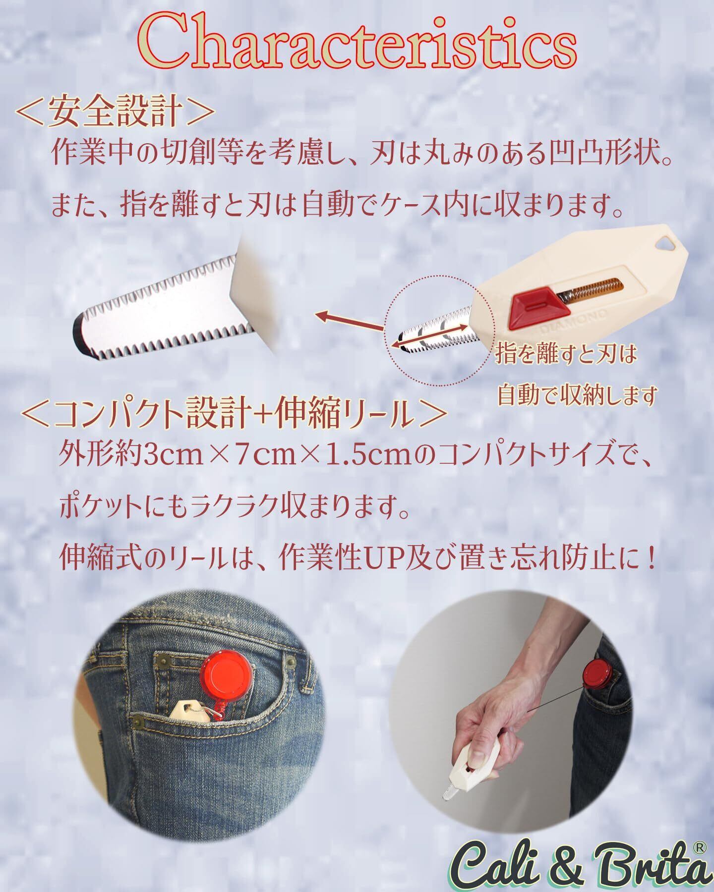 Cali&Brita 【超小型+伸縮リール付き】ダンボールカッター DIAMOND 段ボールオープナー 超小型 安全・安心設計 自動引込 お引越し PPバンドもラクラクカット
