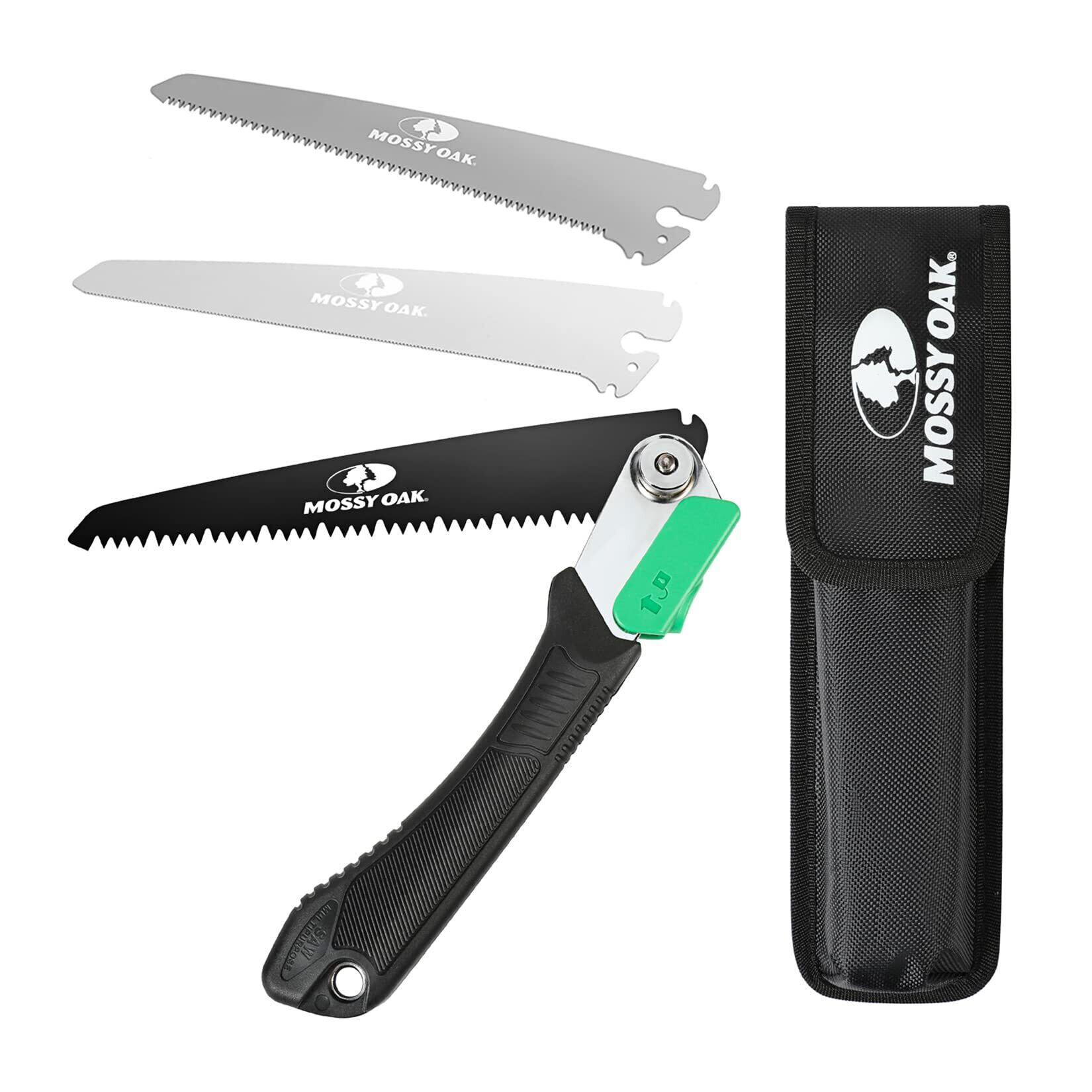 MOSSY OAK ノコギリ 折込のこぎり 替え刃3枚 剪定鋸 折込鋸 折り畳み式 替え刃式 生木用 木工用 硬質プラスチック用 鉄工用替刃付き 多目的廃棄物 粗大ゴミ 安全ロック 専用収納ケース付き