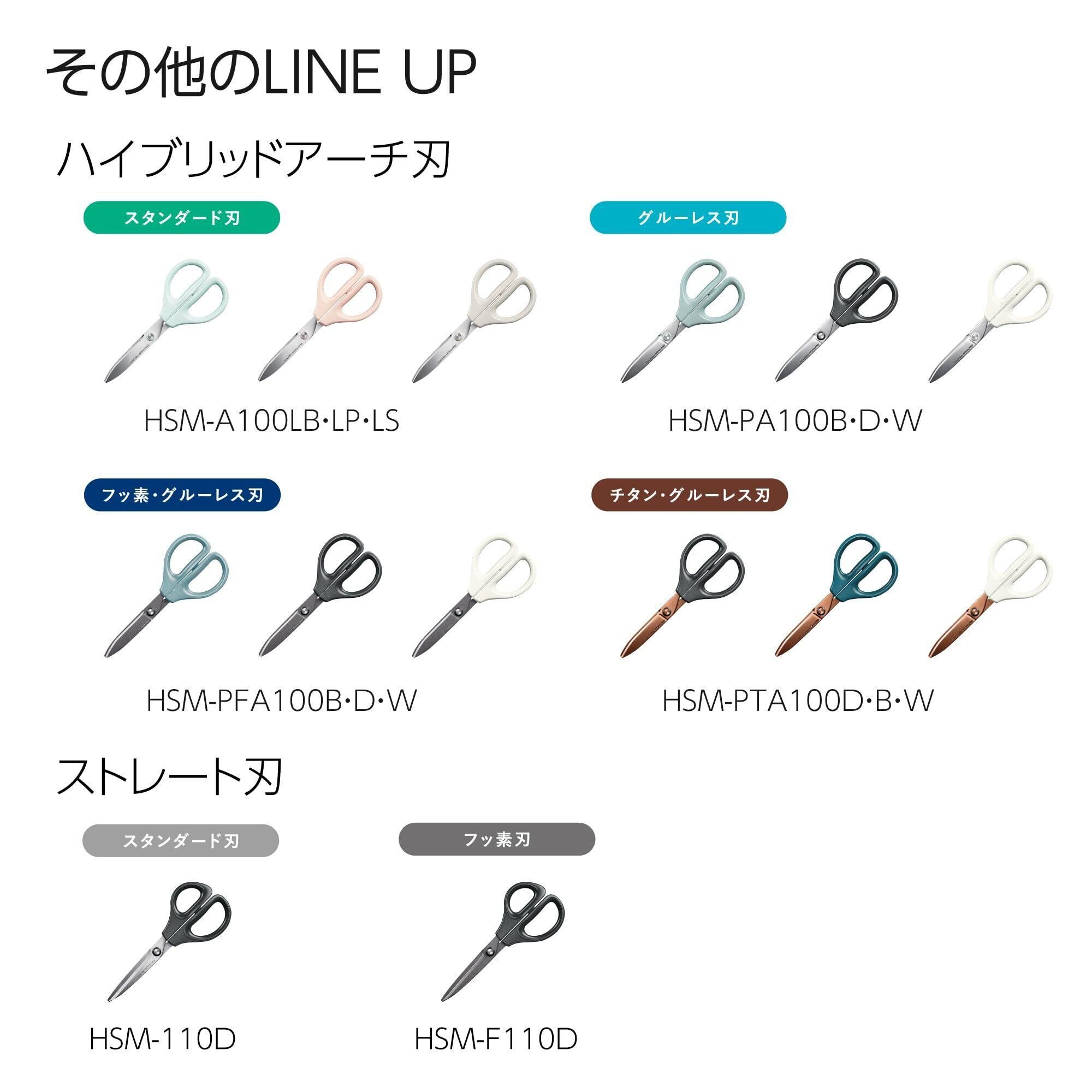 ・手の小さい方にも配慮した、小さめハンドル設計。(自社一般ハサミのハンドル内面積から約30%ダウン ※HSM-PA100比)