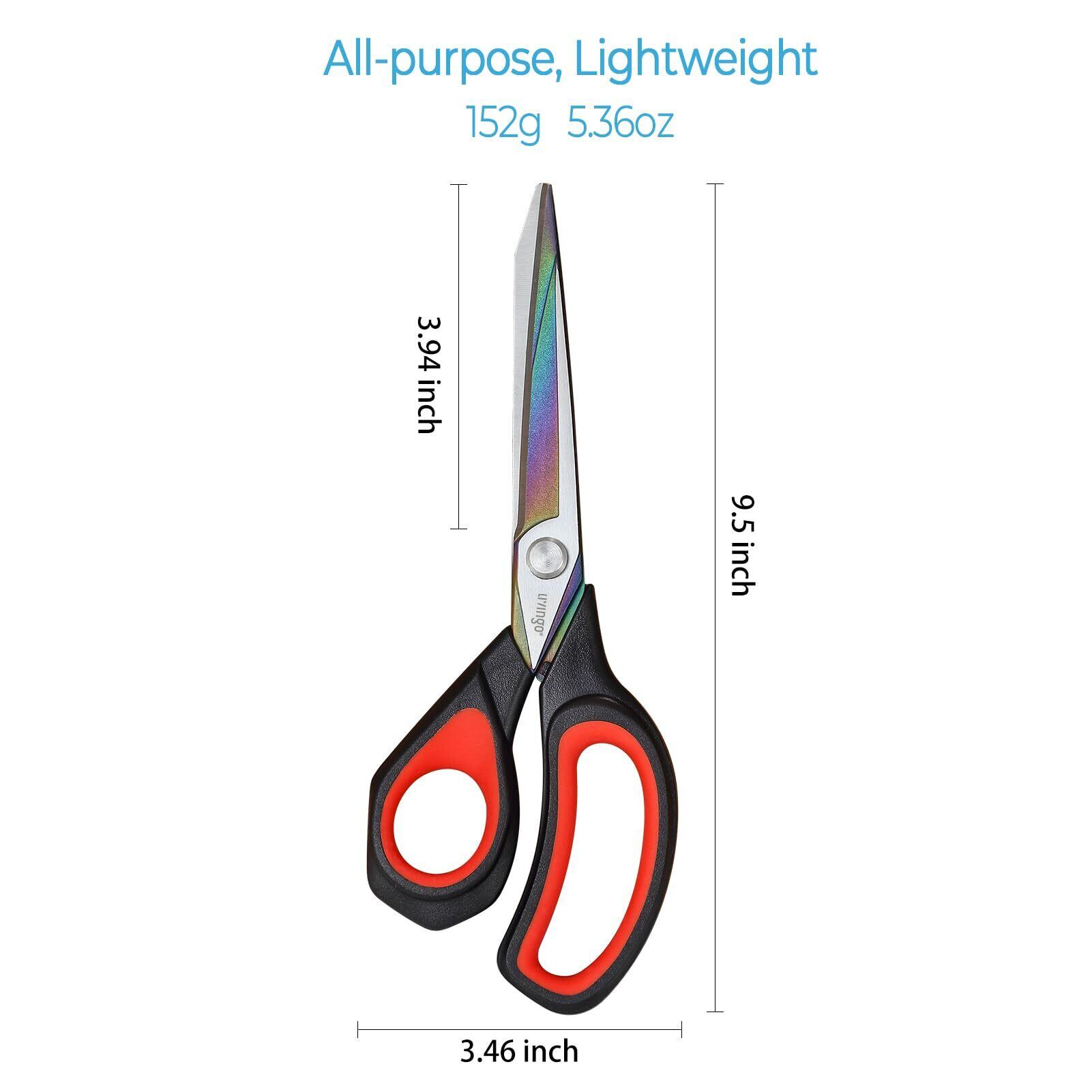 LIVINGOプロ仕様の左利き用ハサミ、鋭いチタンノンスティックブレード、テープ、段ボール、布、さまざまな素材の切断用、16層の布をカット可能、高級ステンレススチール製、ゴムグリップ、254mm