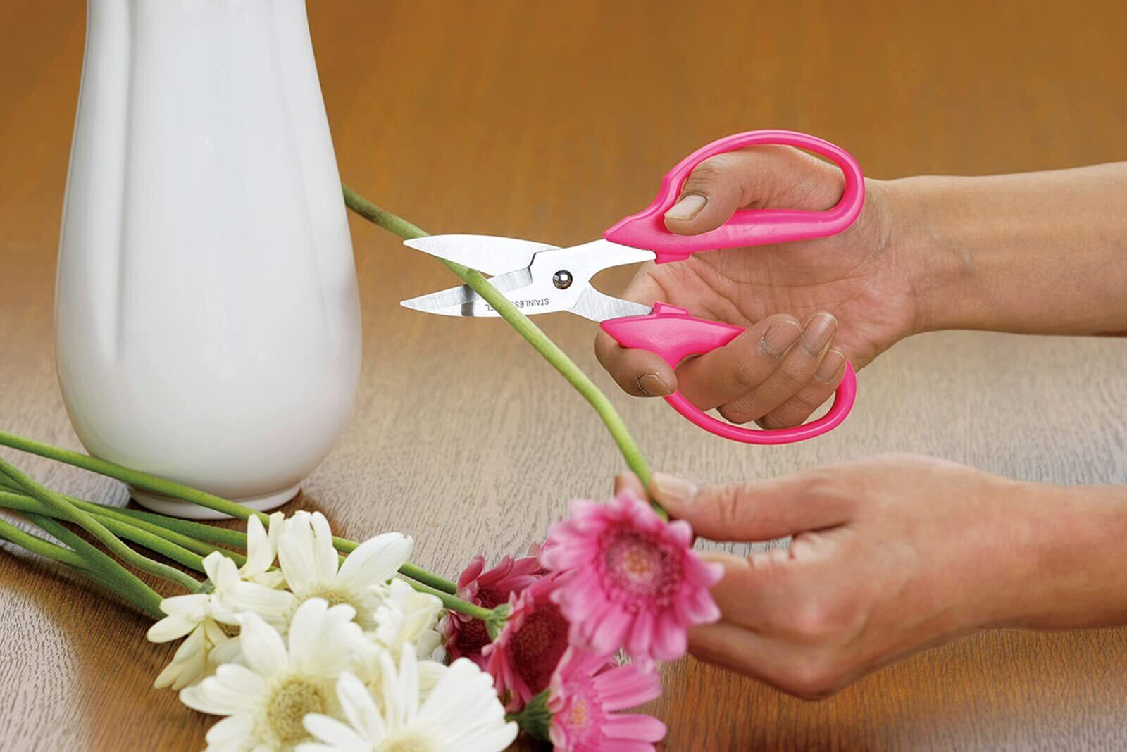 見た目もかわいい、ピンクの取っ手のフラワーはさみ。