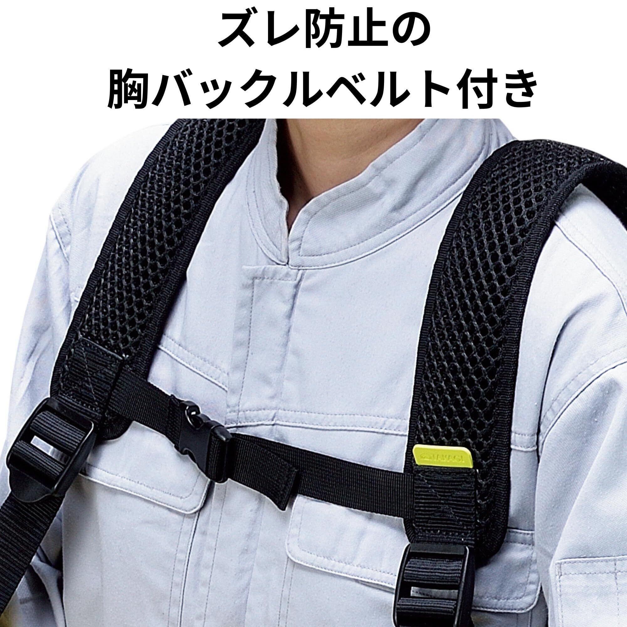 ズレ防止の胸バックルベルト付き・通気性がよくムレにくいメッシュ生地