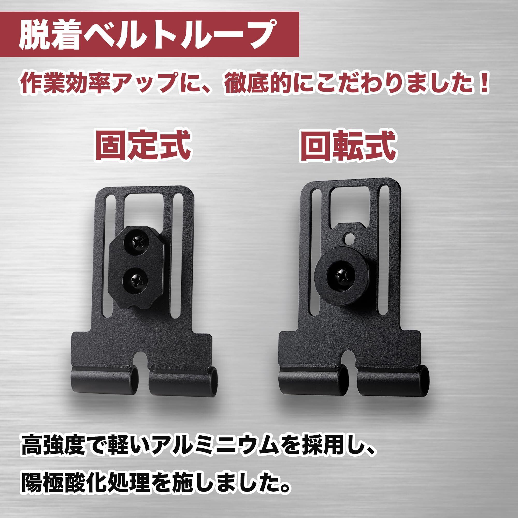【2025最新】ベルトループ SUS-K SUS-S互換 アルミレーザーカット 脱着ベルトループ 連結金具 腰道具カスタム用 軽量 高強度 右手用・左手用対応・固定・回転自在 オス金具付属
