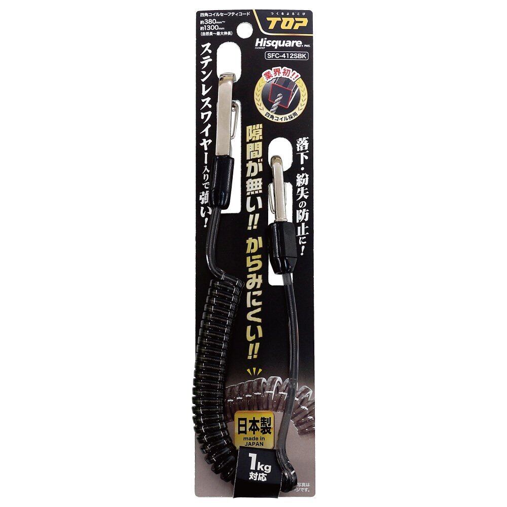 トップ (TOP) 四角コイルセーフティコード ブラック 日本製 絡みにくい4角コイル形状 安全紐 SFC-412SBK