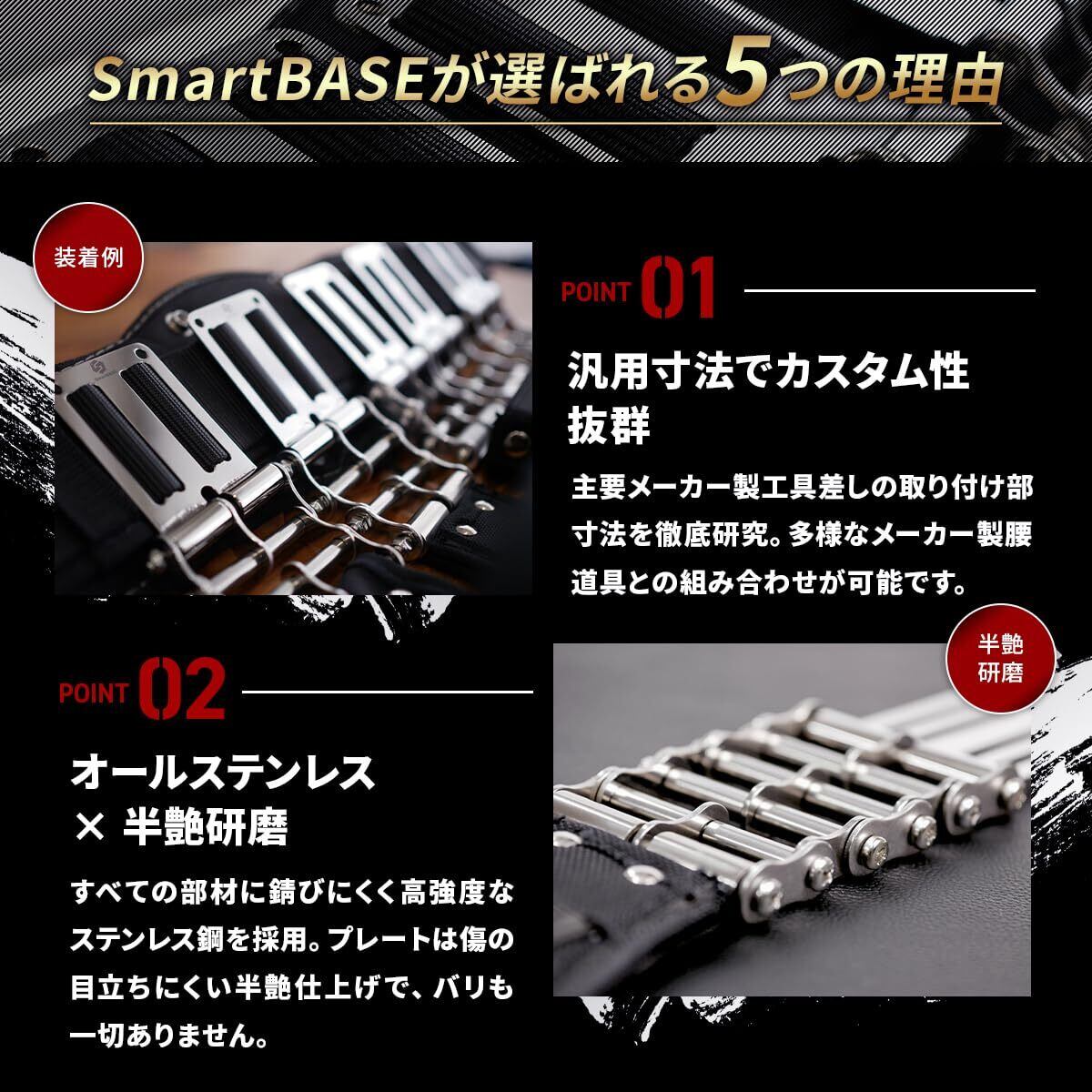 SmartBASE 連結カスタムチェーン 腰道具用 オールステンレス仕様 高強度 錆びにくい 長さ調整可能 汎用設計 公的機関強度試験済