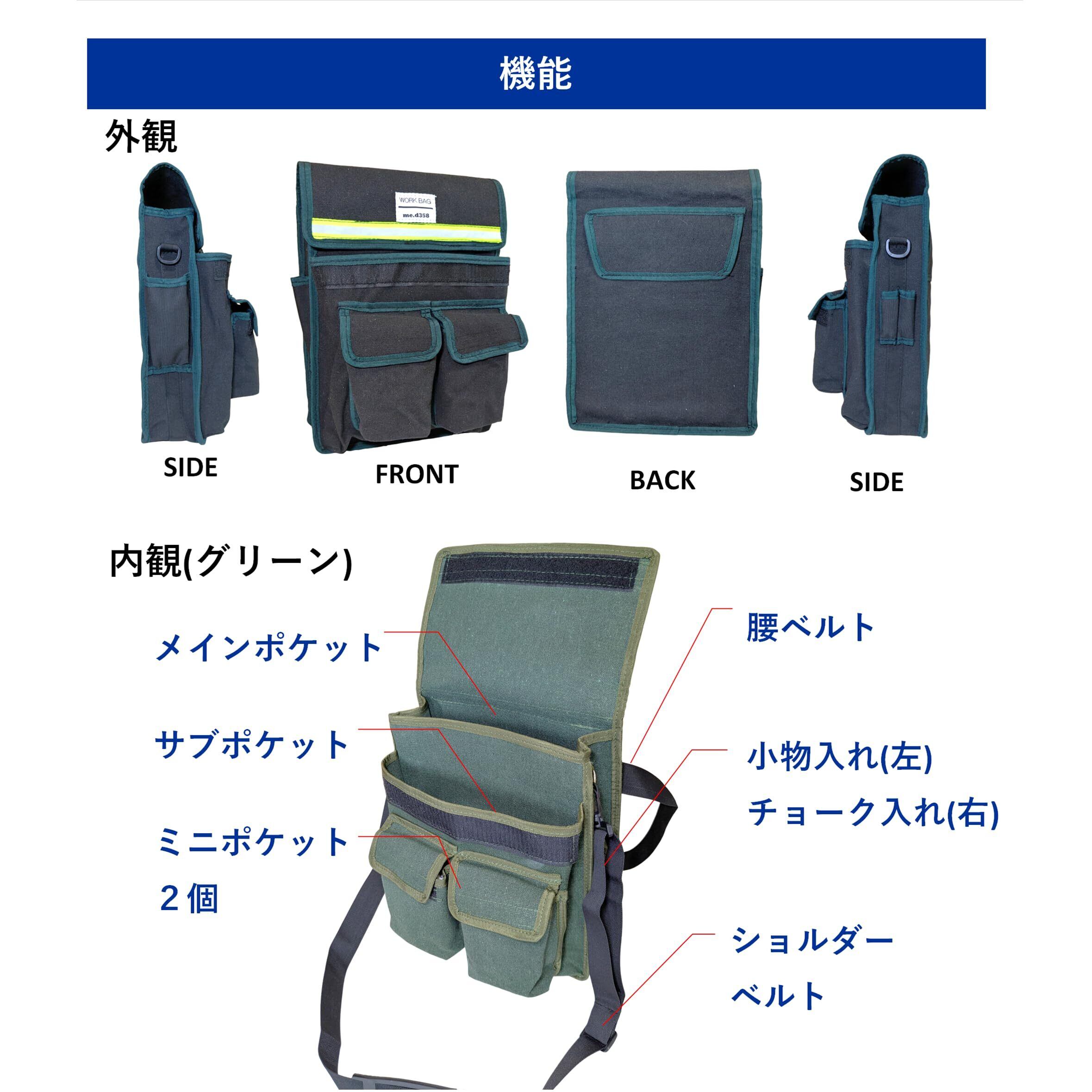 【特価セール】[me.d358] A4バインダー、タブレットが入る 腰袋 2WAY仕様 腰袋・ショルダー ふた付き ベルト付き A4ファイル ツールポーチ 工具入れ 帆布 電工袋 測量 調査 設計者 監督 施工管理 監理 WORK BAG