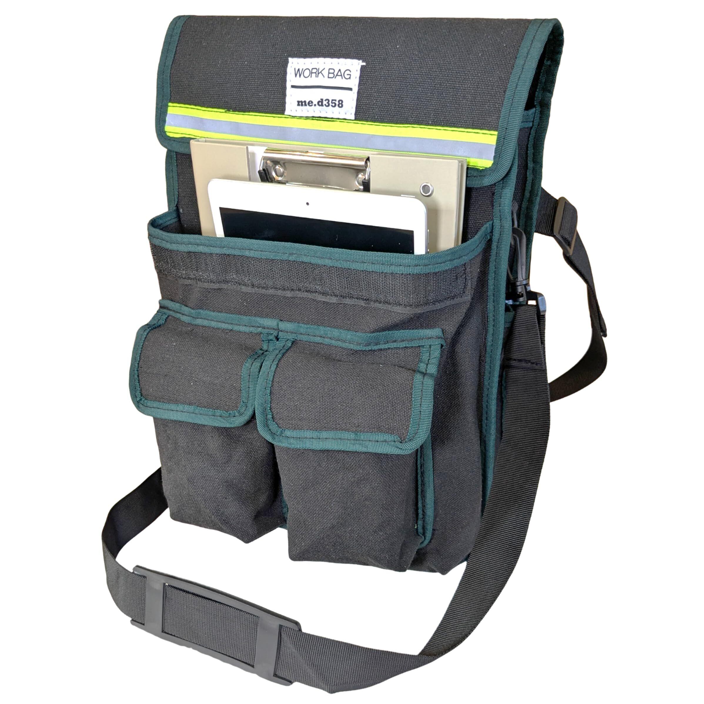 [me.d358] A4バインダー、タブレットが入る 腰袋 2WAY仕様 腰袋・ショルダー ふた付き ベルト付き A4ファイル ツールポーチ 工具入れ 帆布 電工袋 測量 調査 設計者 監督 施工管理 監理 WORK BAG