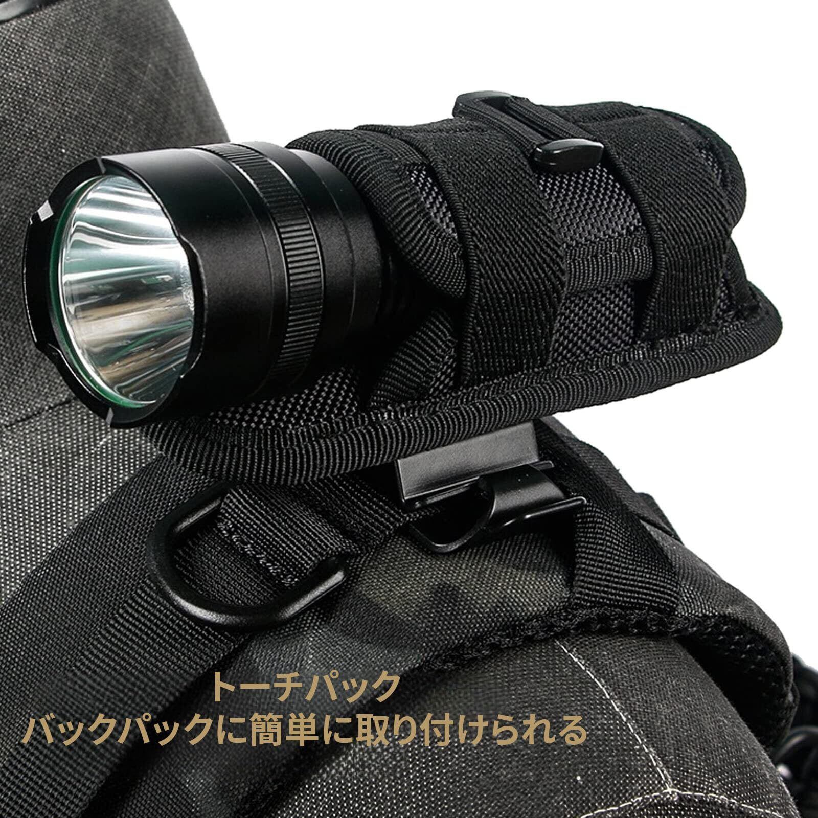 オープンデザイン:オープンデザインにより、タクティカルトーチのテールキャップに素早くアクセスできます。前面の高品質ゴムバンドは、異なるサイズのライトに合うようにトーチを安定させます