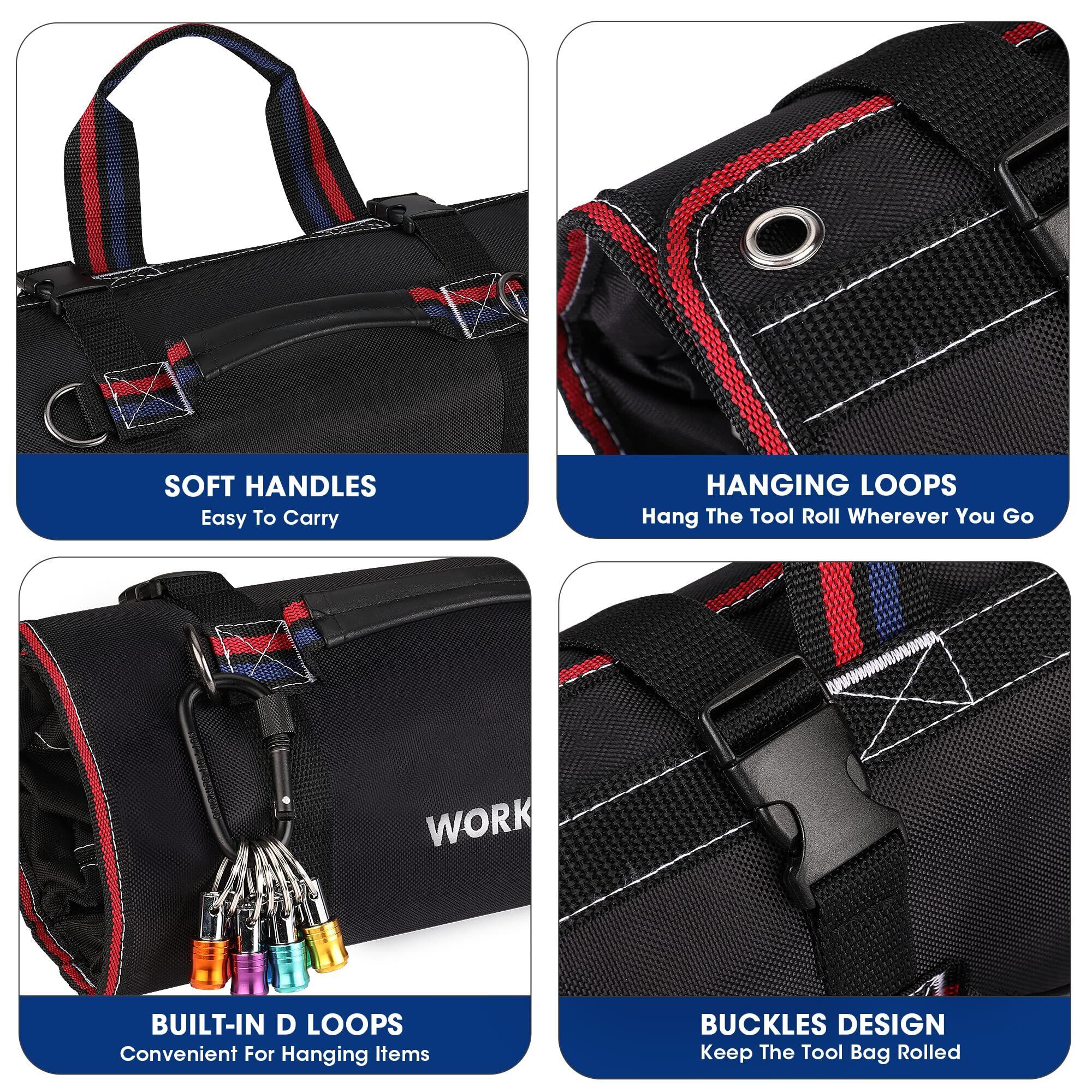 WORKPRO ツールバッグ ツールロールバッグ 工具バッグ 工具いれ 工具袋 道具袋 高耐久 6つ収納ポケット 多目的 車載 家庭 大工 工具収納バッグ ブルー