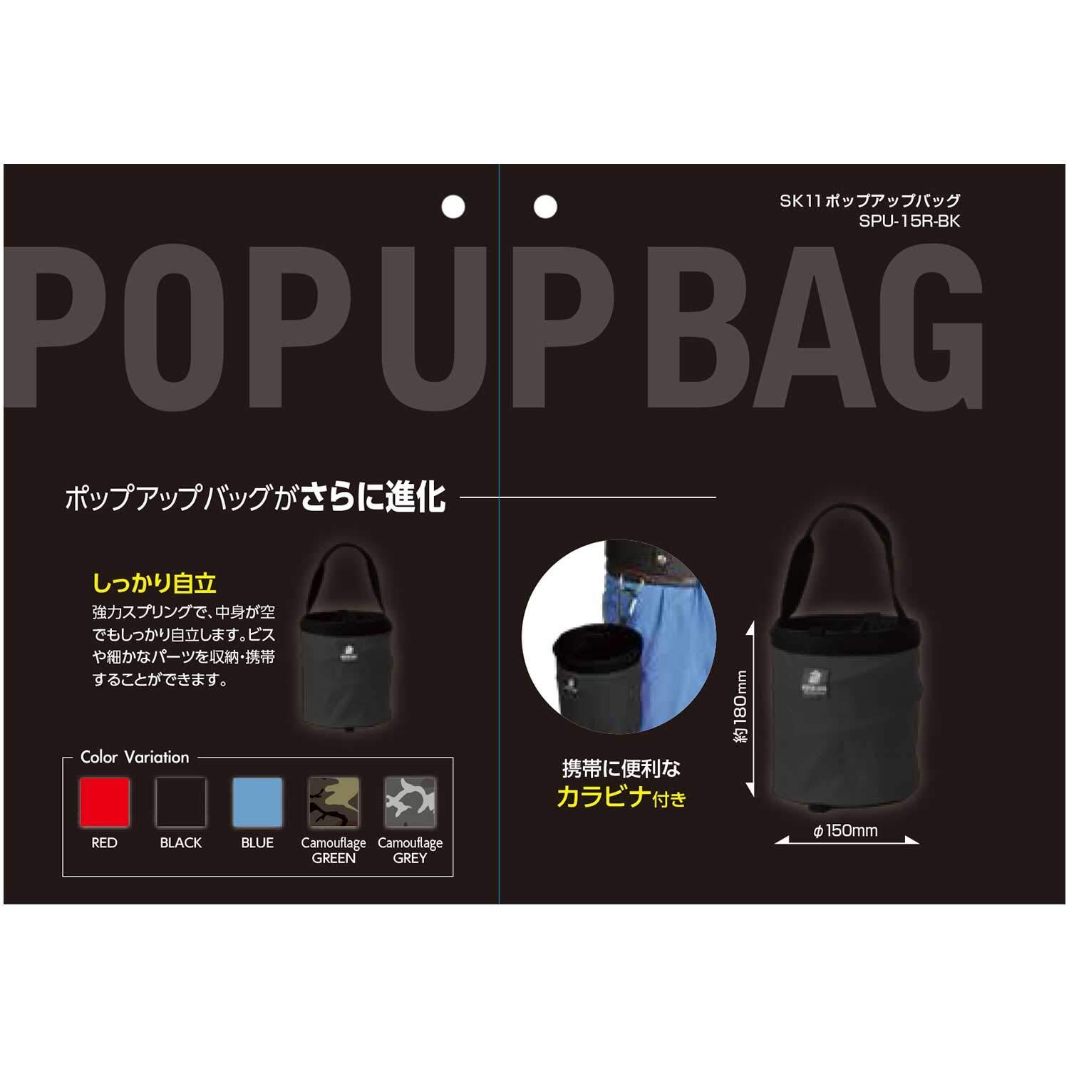 【特別価格】SK11(エスケー11) ポップアップバッグ 幅150×奥行150×高さ180mm ブラック SPU-15R-BK キャンプ ツールバッグ