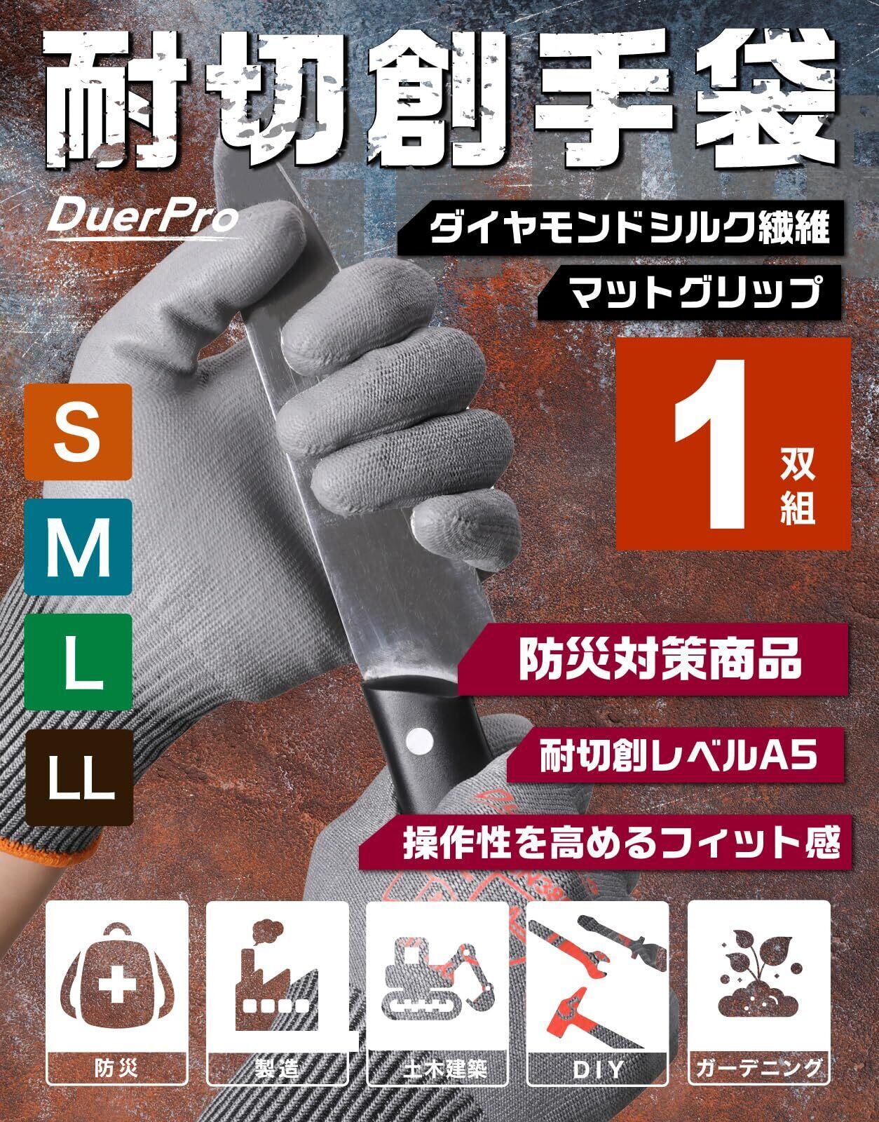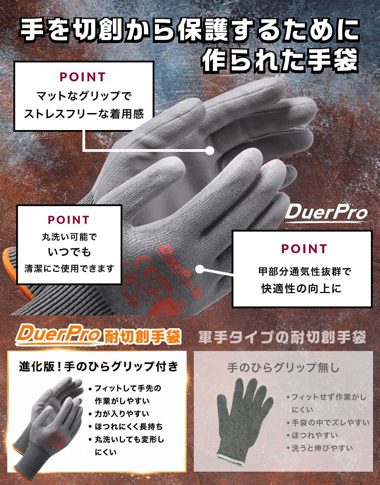 [Duerfusa] 防刃手袋 ANSI耐切創レベル5【高耐切創性とフィット感を両立】ダイヤモンドシルク繊維 耐切創手袋 防刃 作業用手袋 防災 耐摩耗 耐引き裂き コーティング付き 滑り止め 手袋 軍手 災害 現場 工場 DIY アウトドア 作業用 大口注文歓迎 ガーデニング 選べる1双2双