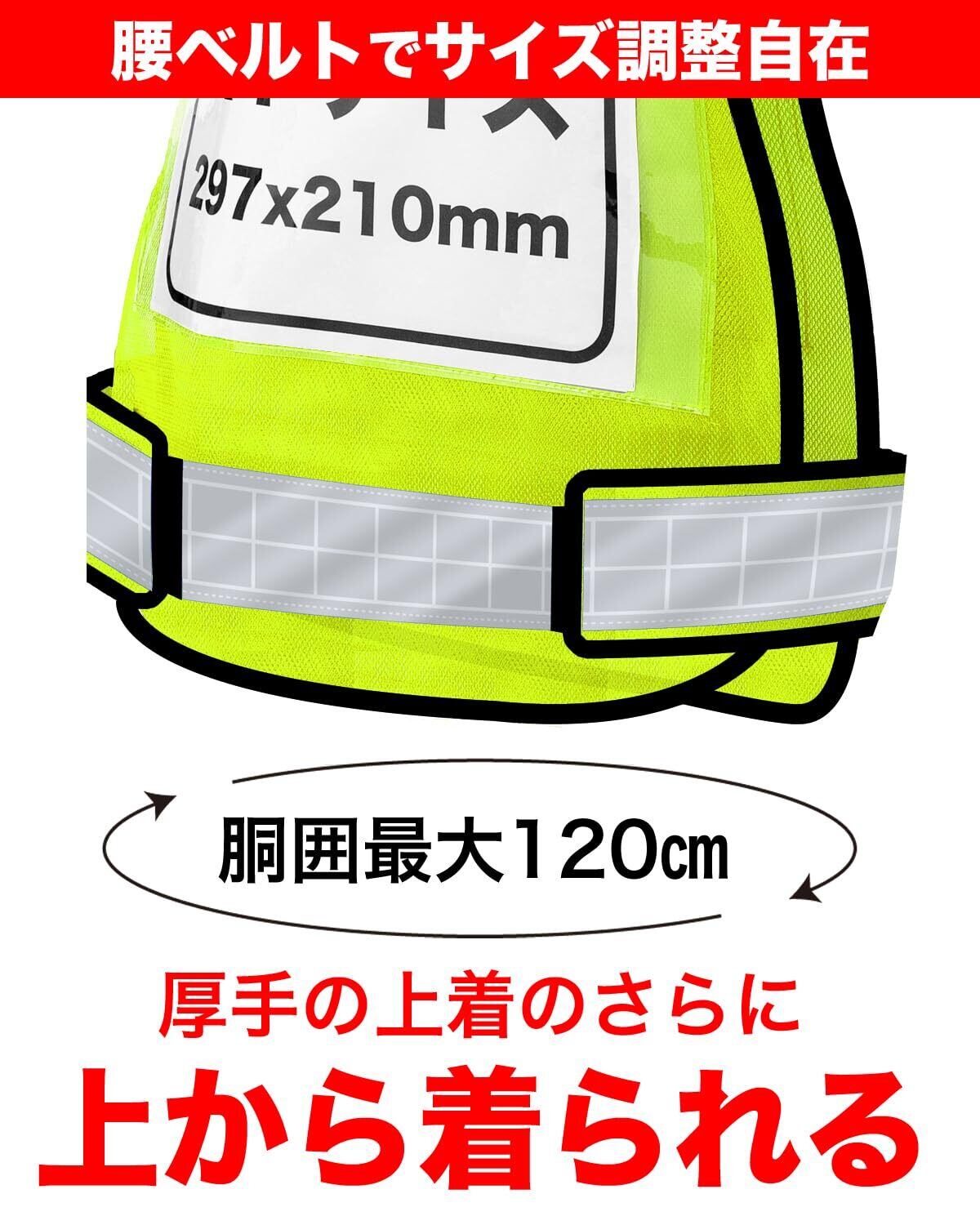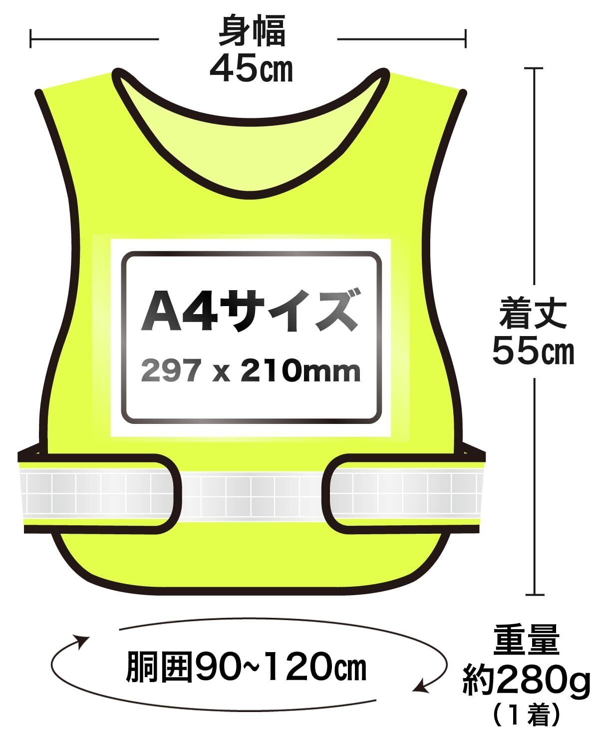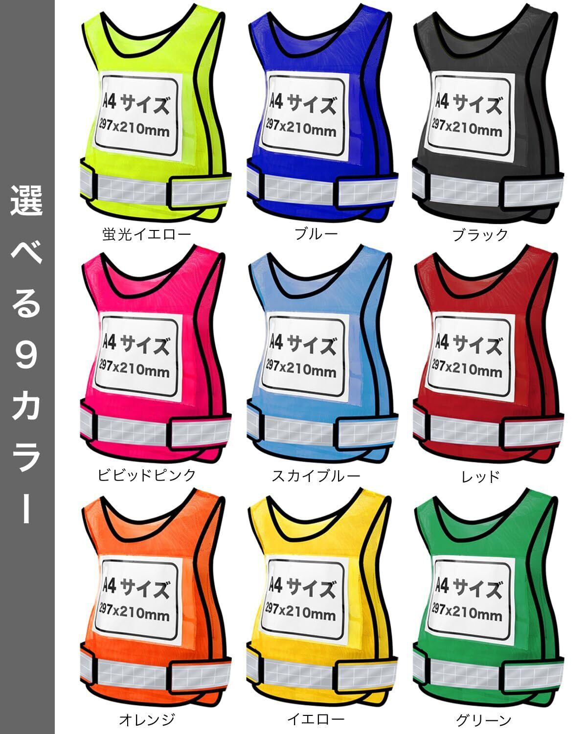 【数量限定】[olnamo] 差し込みベスト 差し込みゼッケン 反射 メッシュ マジックテープ A4用紙 安全 反射材 速乾性 イベント用 職務表示 ビブス 胴囲最大120cm 調整ベルト 用紙はプリンターで自作可
