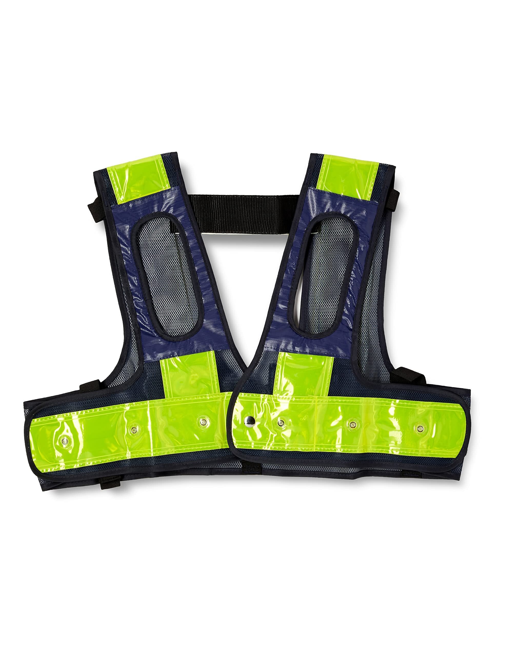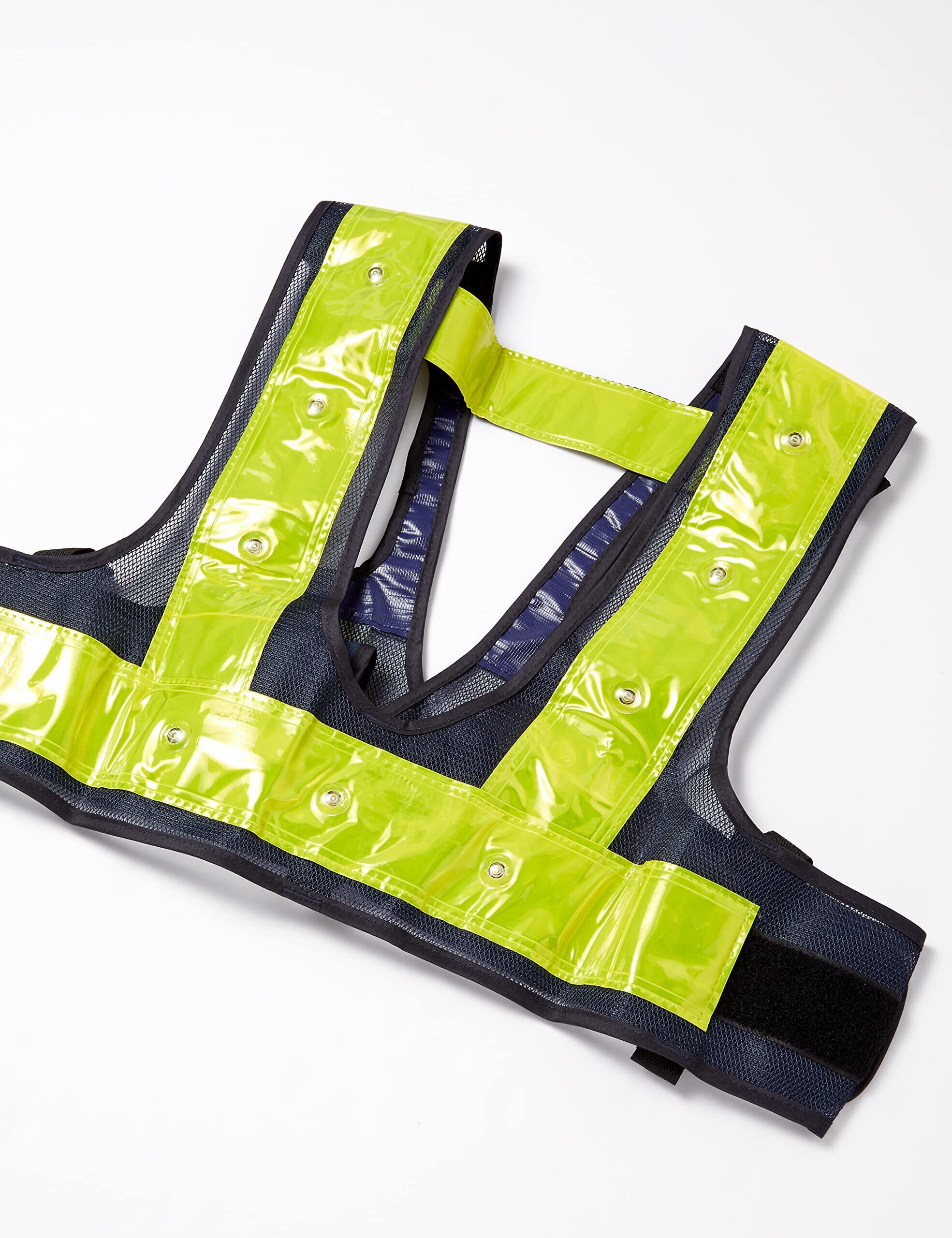 ●色:紺/黄●LED色:赤●着丈(cm):40●胴周り(cm):約100〜120●サイズ:フリー●反射材幅:70mm