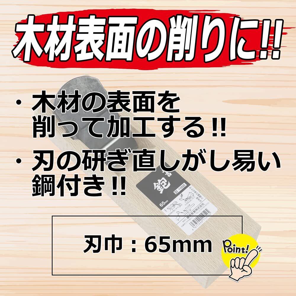 【特別価格】千吉 平かんな 台付鉋 刃巾65mm 木材削り加工用 鋼付 奥行6.9×高さ27.5×幅8.2cm