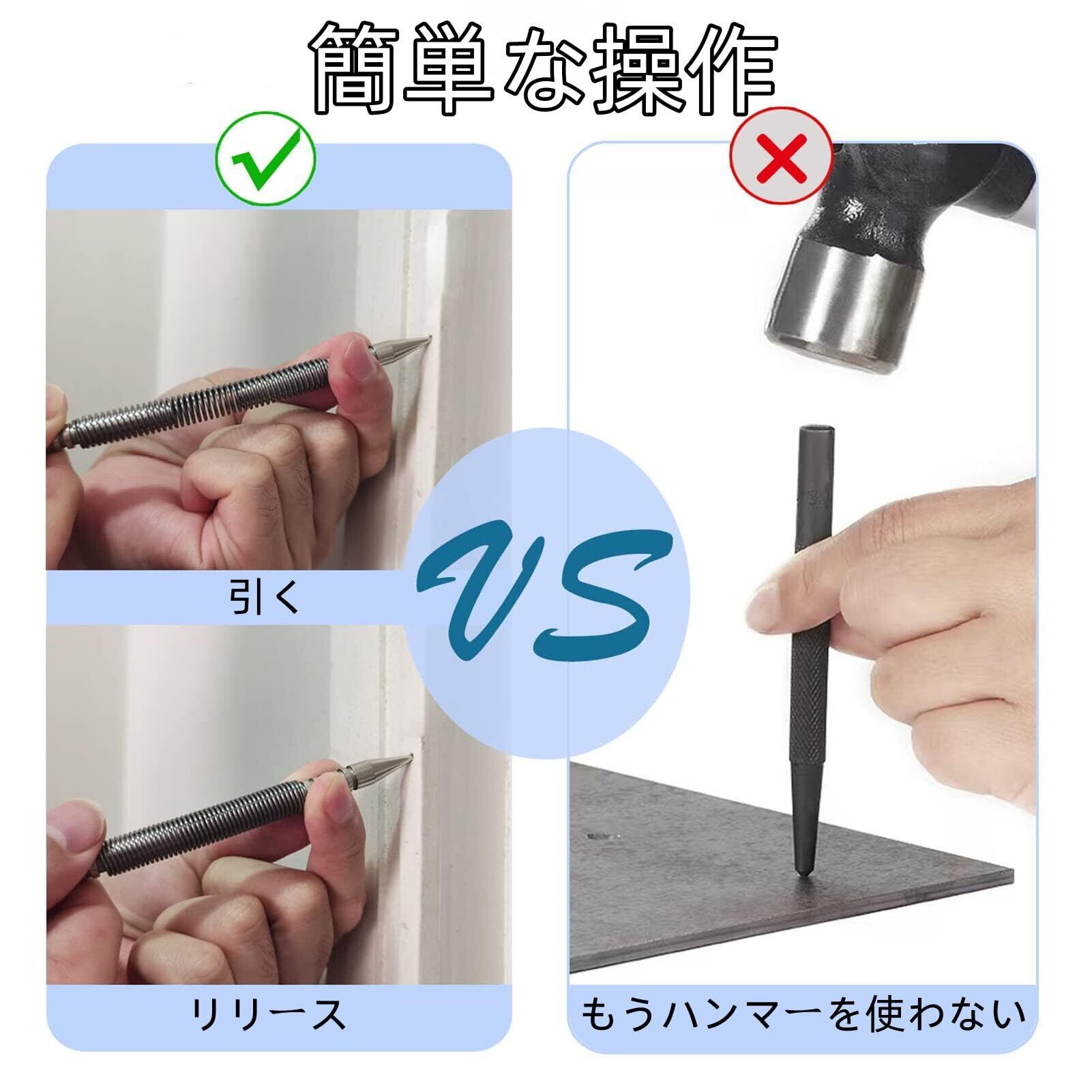 【多機能で幅広い用途】:通常の釘打ちや仕上げ材の取り付けだけでなく、このセットは強力な多機能性を備えています。木材、金属、プラスチックの表面に明確なマークを残し、施工時の位置合わせを容易にします。また、ドアのヒンジピンを簡単に取り外すことができ、木工や金属加工など多様な用途に対応します。