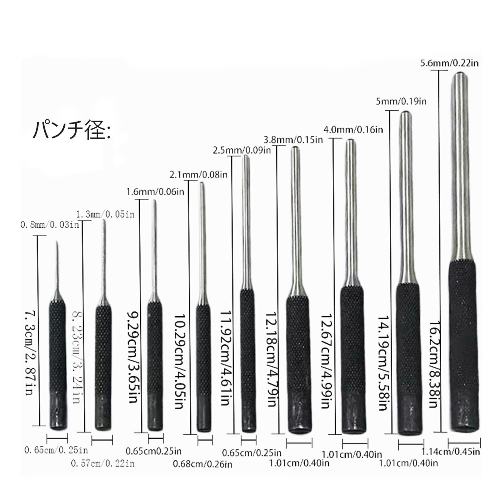 9点セット ピンポンチ 収納袋付 工具 穴あけ 高精度 クロム合金 ポンチセット ピン抜き 携帯便利 DIY 家庭用