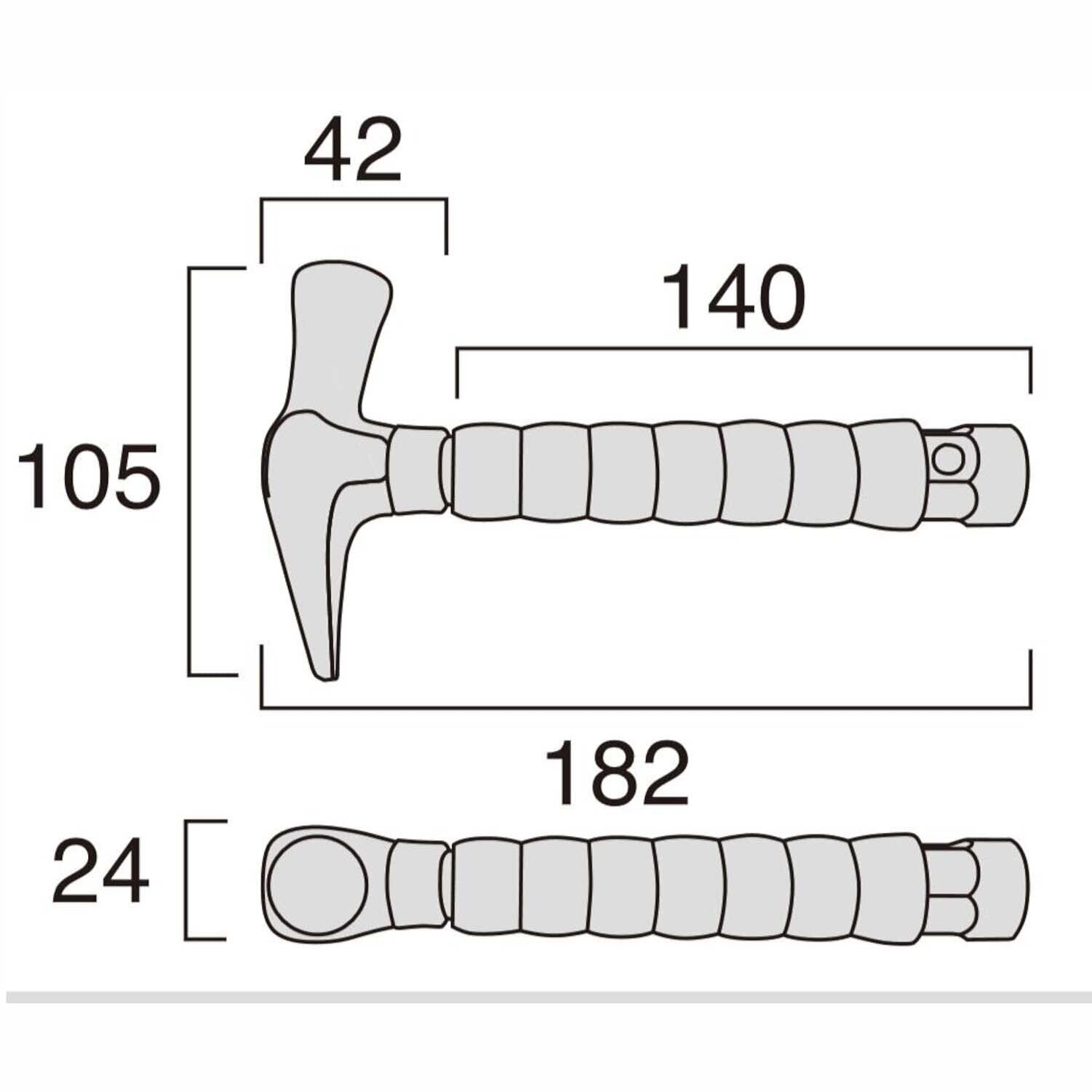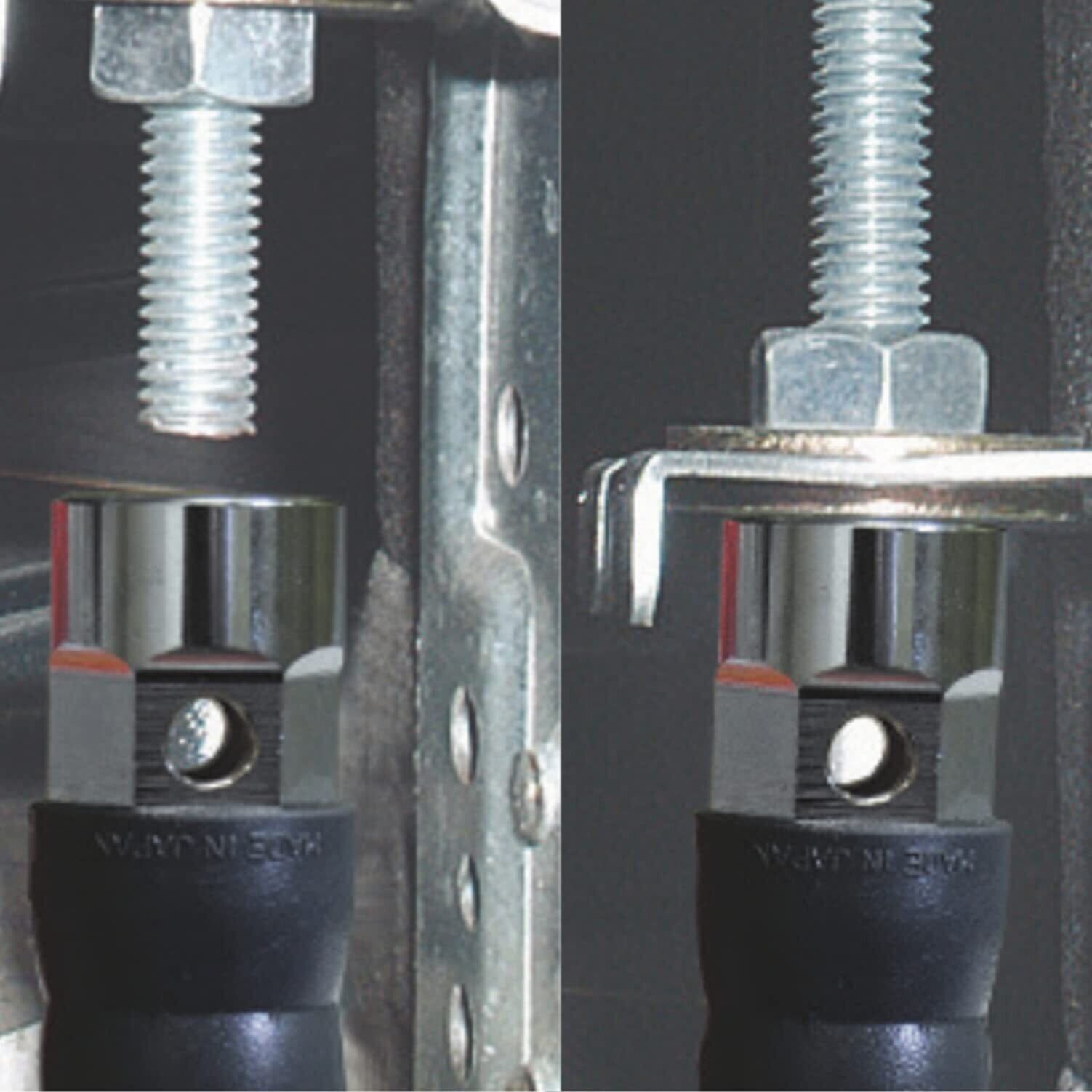 ヘッド部からグリップの先まで、完全に貫通しており、205mm以上の寸切りボルトでも深さを気にせず使用できます