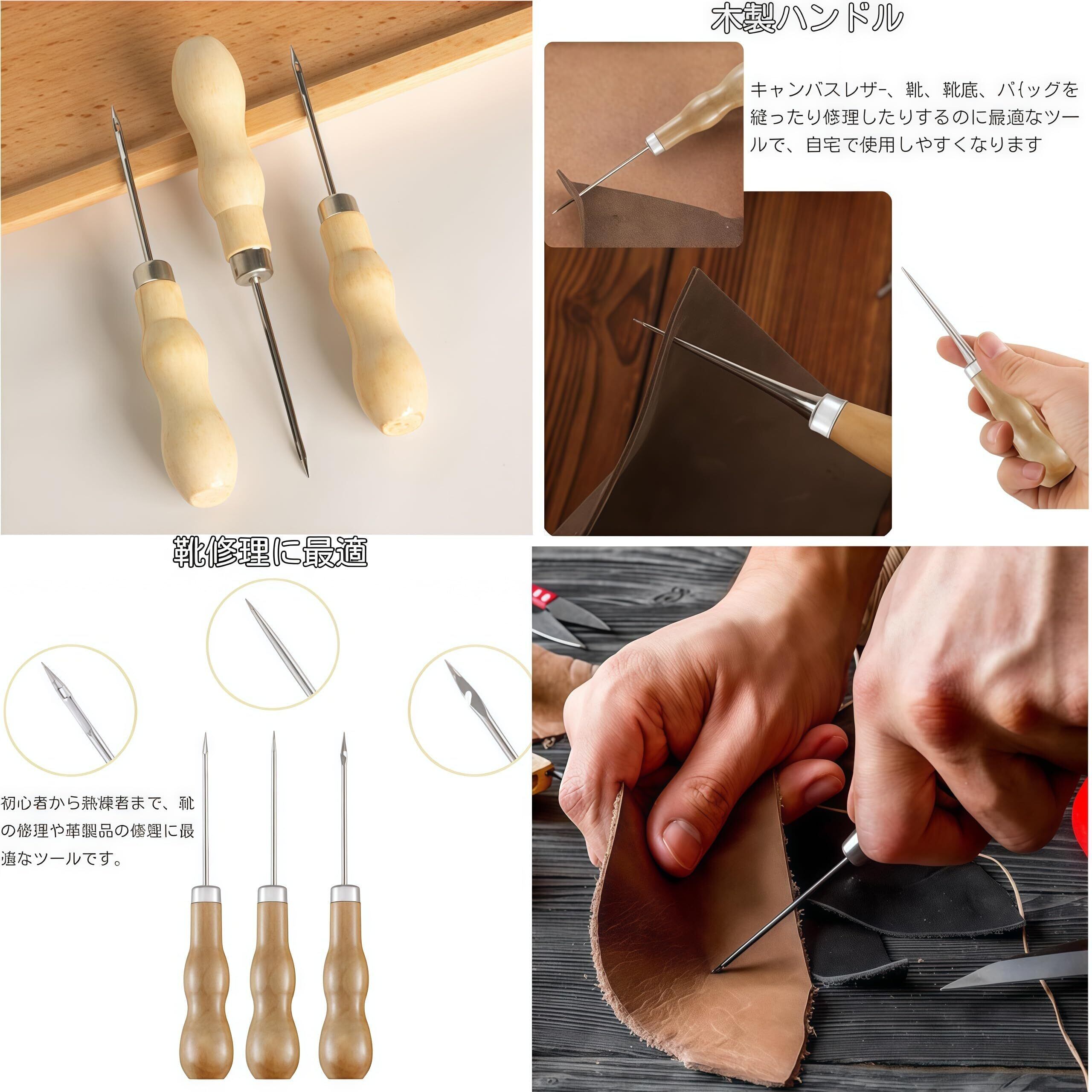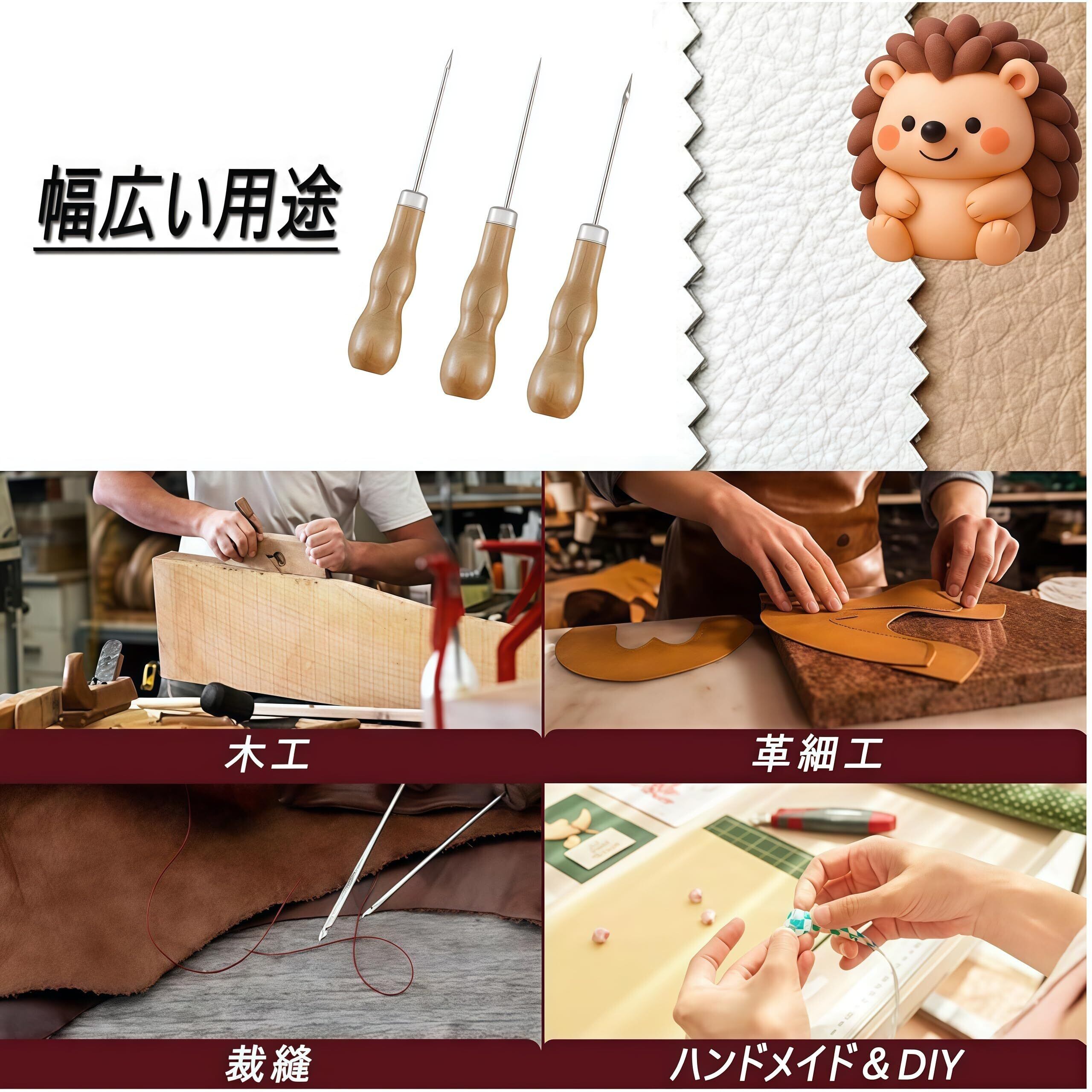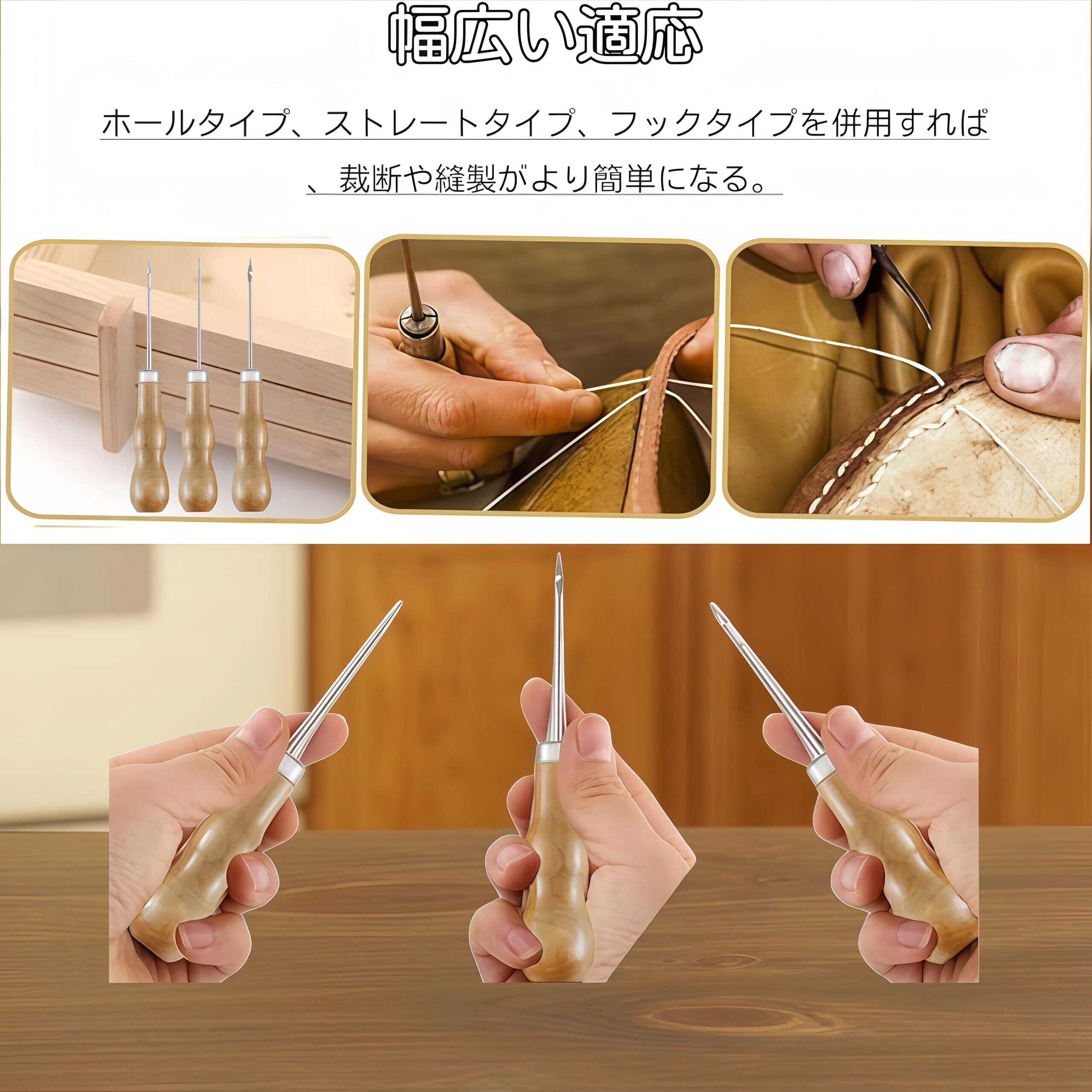 三つです目打ち せんまい通し 千枚通し レザークラフト 工具 目打ち 手芸 手作り 縫製 修理用 便利な靴修理ツール (ホール、フック、ストレートテーパーの3点セット