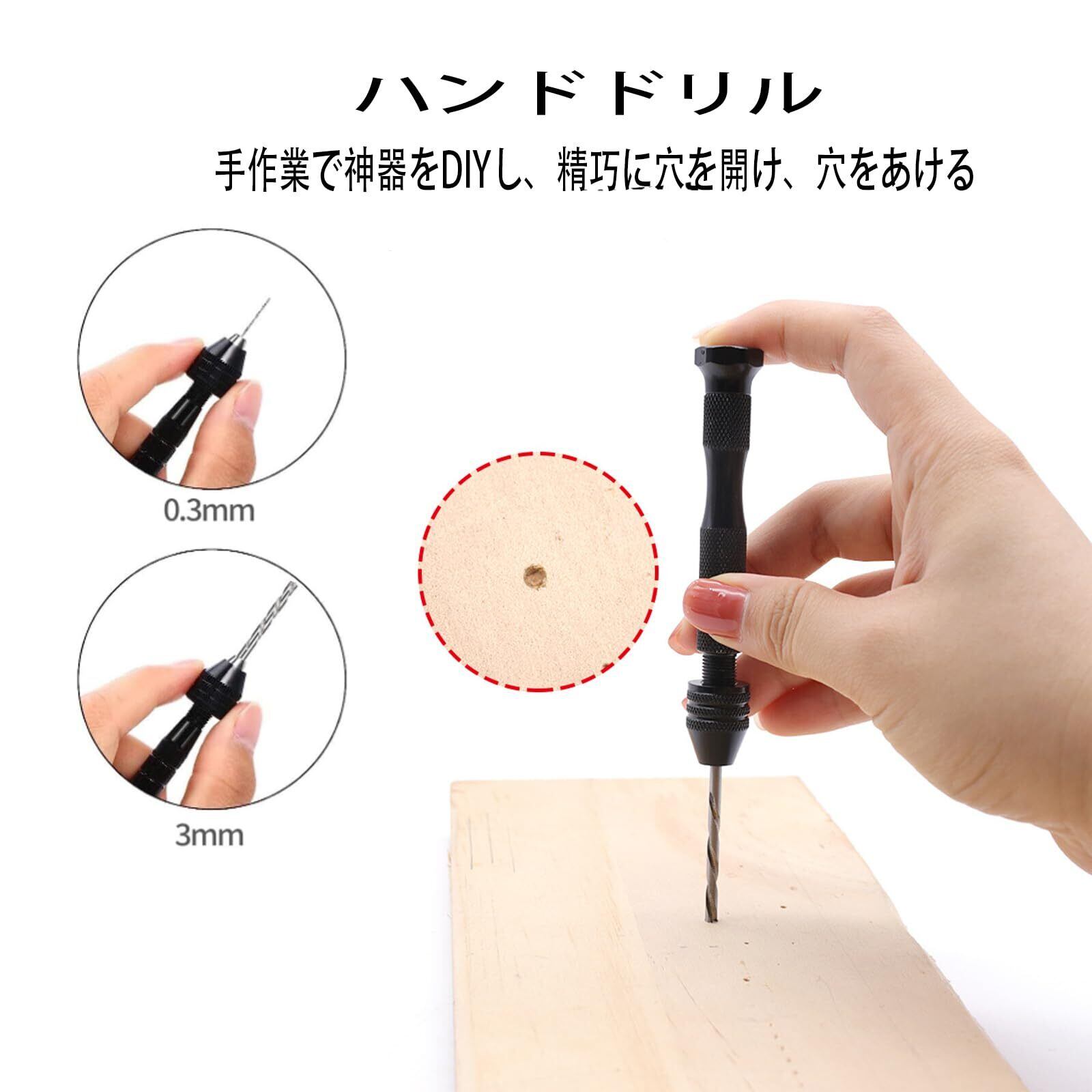 【適用範囲】小さな穴を開ける必要があるDIYプロジェクトにおいて、ピンバイスは非常に役立ちます。電子部品の取り付け、宝石やビーズなどの小さな素材を使用するジュエリー作り、プラモデルや模型の製作、革製品の穴あけなどに活用できます。木材、プラスチック、軟質金属など、幅広い素材に使用できる。微細な穴や精密な工作物の穴あけが可能である。