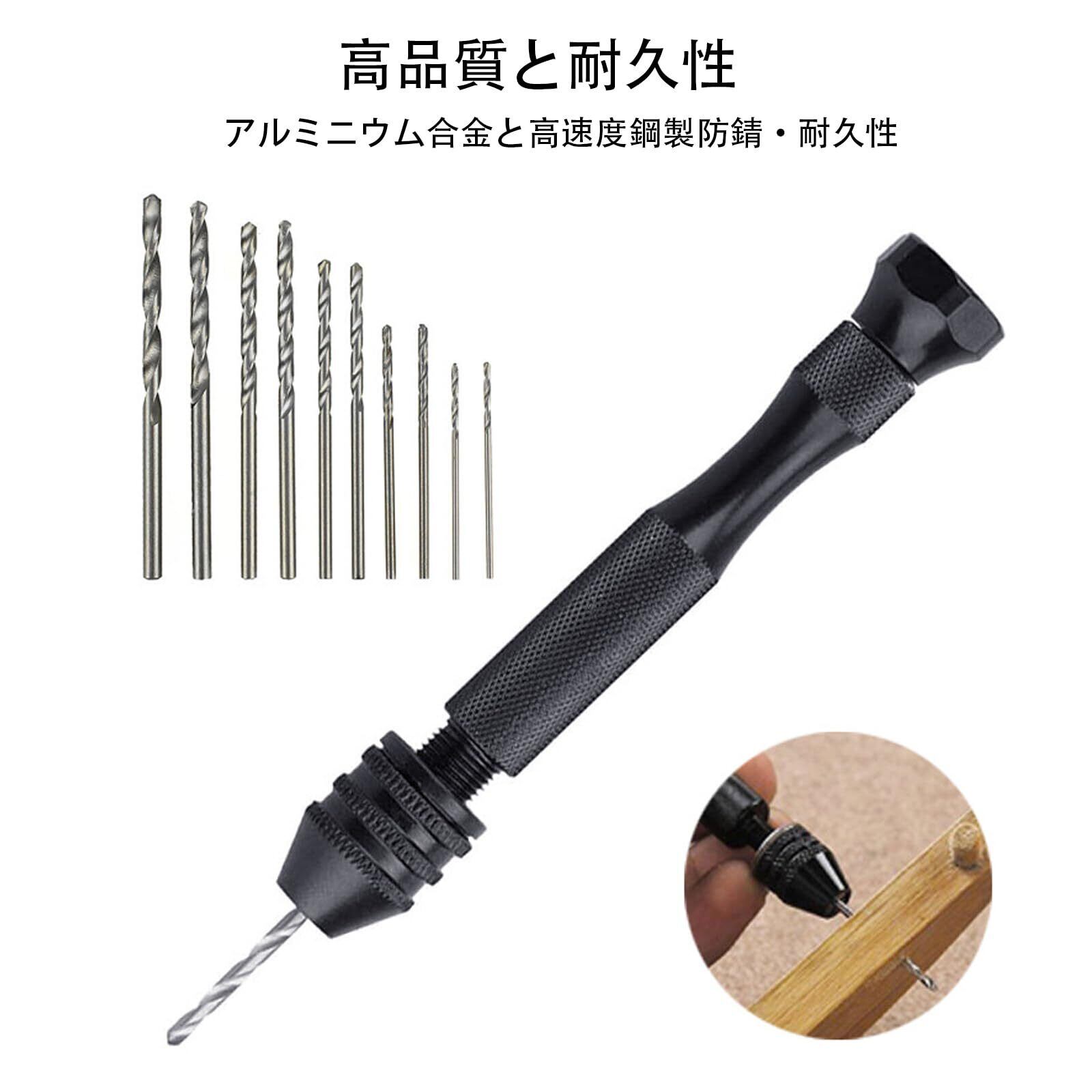 【新着商品】FineGood ピンバイス ハンドドリル プラモデル 工具セット 鋭い用具小さい精密ハンド ドリル力の騒音の自由な訓練の技術 DIY 用具は 収納式 付け替え可能 ドリル 付き セット (ピンバイス1本+ドリル10本)