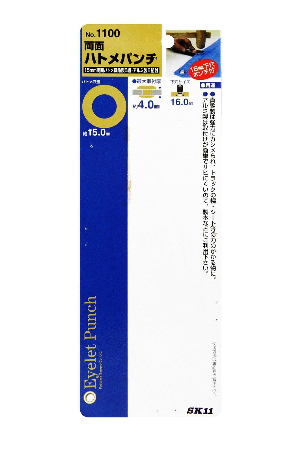 【2025最新】SK11 両面ハトメパンチ ハトメ穴径約15.0mm No.1100 シルバー、ゴールド
