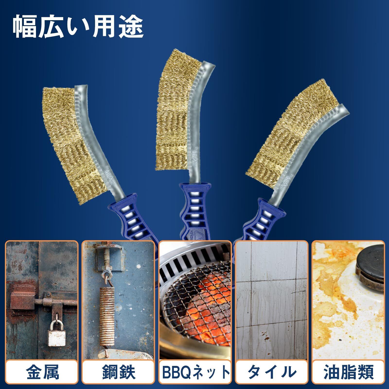 【2025最新】SALI ワイヤーブラシ 真鍮ブラシ ステンレスブラシ 金属ブラシ 先曲り 穴付き 錆落とし 汚れ落とし 塗装剥がし 清掃 セット 3本