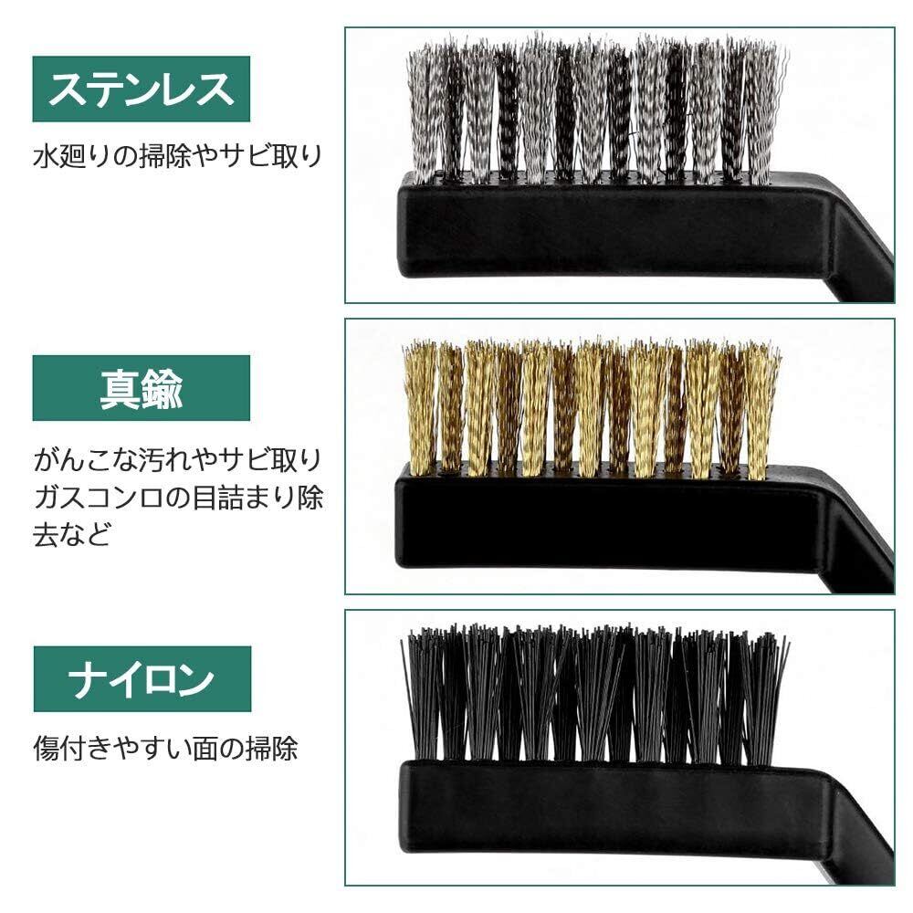 【サイズ】約17cm*1.2cm 【セット内容】6本組。真鍮ブラシ*2、ステンレスブラシ*2、ナイロンブラシ*2