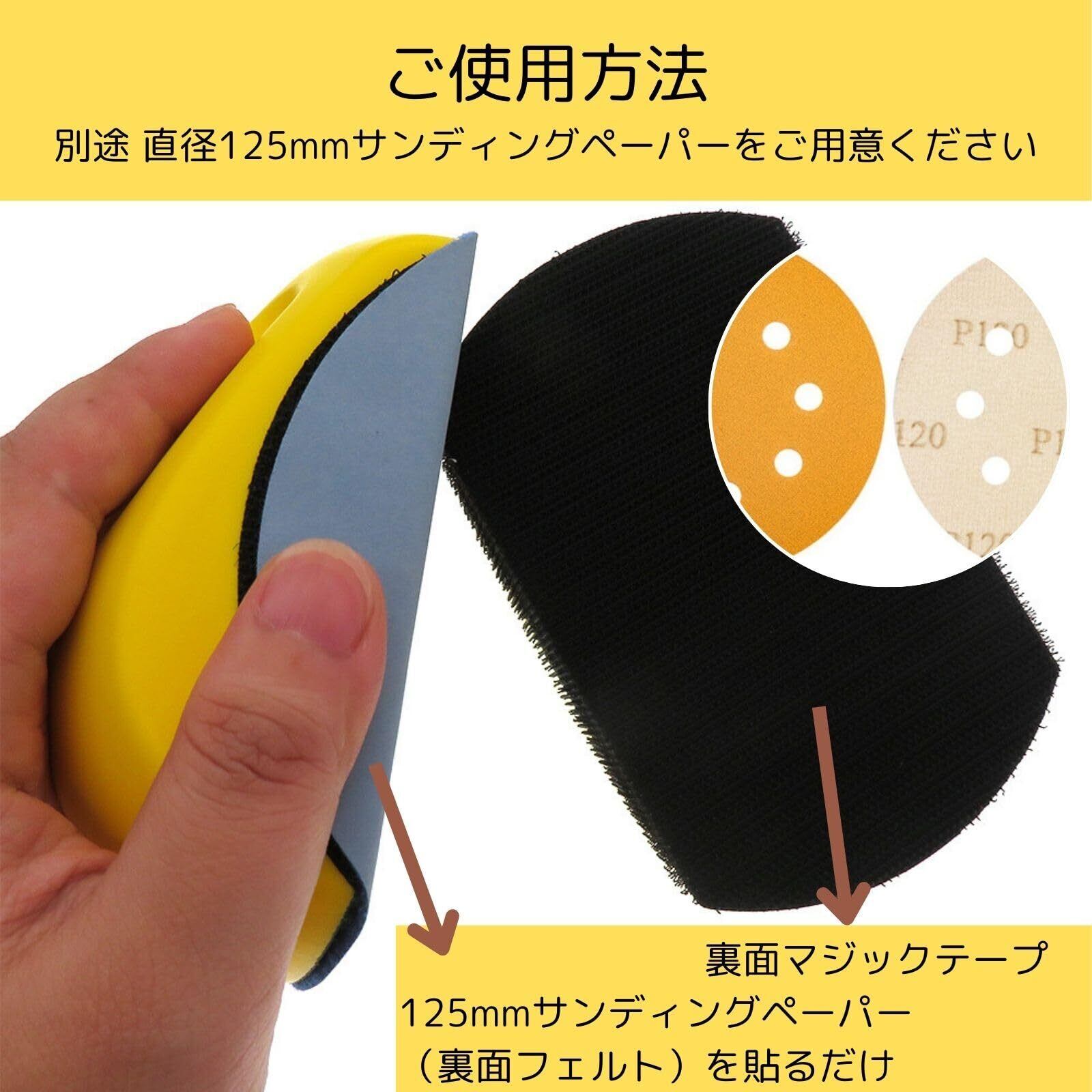 【適合サンディングペーパー】直径125mm 12.5Φ ※穴あき穴なしは問いませんが、マジックテープに粉塵が付着しづらい穴なしサンディングペーパーを推奨します