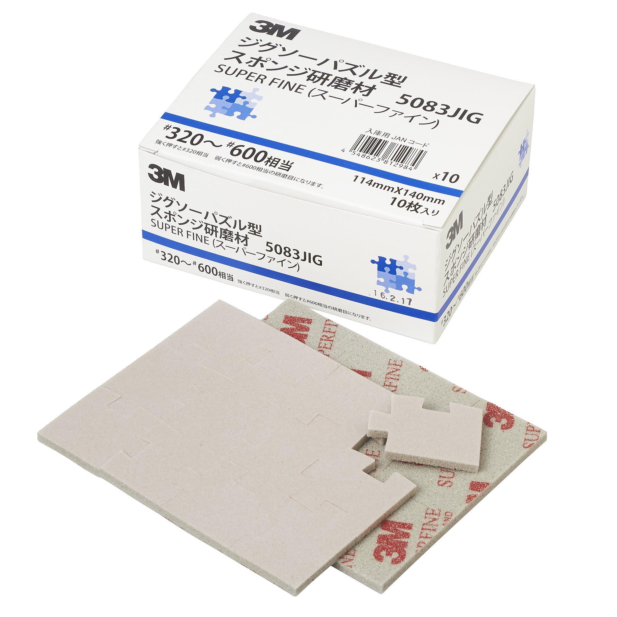 3M ジグソーパズル型スポンジ研磨材 5083JIG 114X140mm #320-600相当 10枚入り