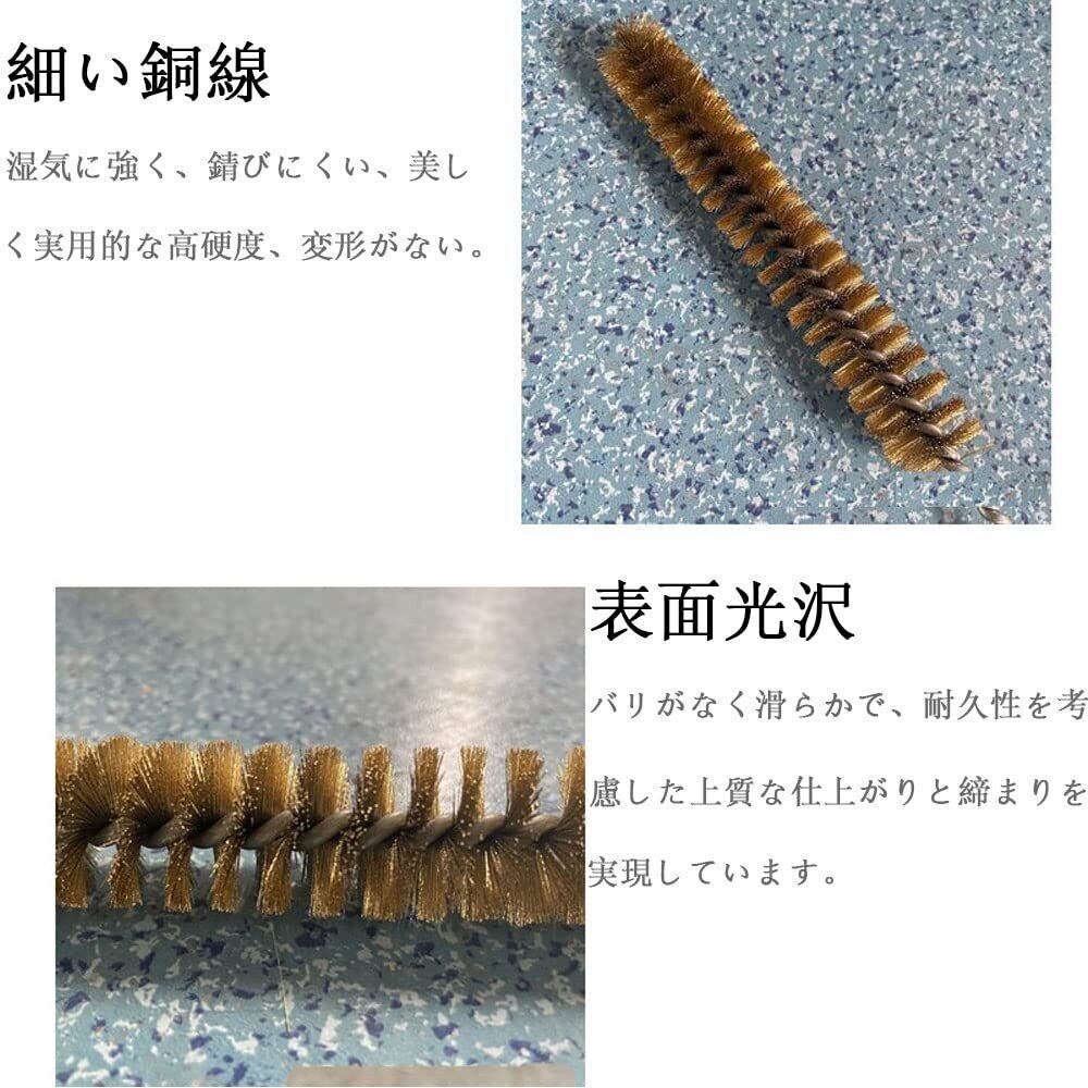 素材:真鍮製のチューブクリーニングブラシは、真鍮線を使用しているため耐久性があり、長く使用でき、ステンレス製に比べ重量も軽いです。