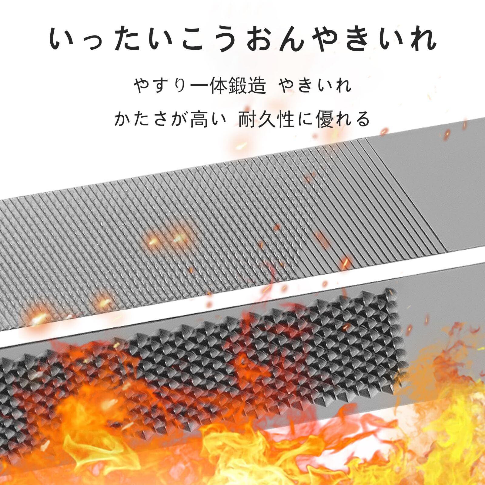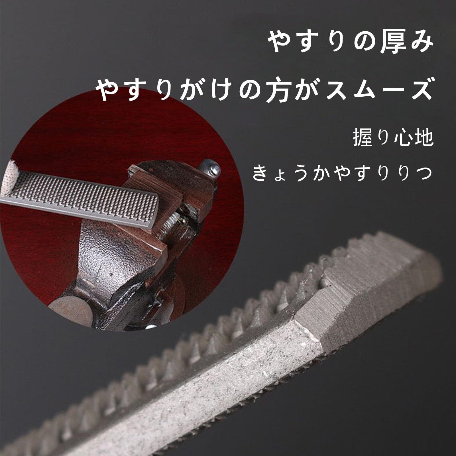 【高品質材料】炭素鋼材料、ヤスリの硬度を高め、耐久性が良く、耐摩耗性が良く、丈夫で耐久性がある。