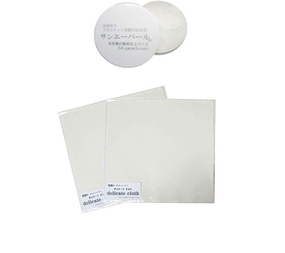 【特価セール】サンエーパール研磨セット デリケートクロス 3AP delicate cloth ケアクロス 研磨剤セット マイクロファイバークロス 15cm×15cm+サンエーパール プロ用 プラスチック研磨剤 時計風防用研磨剤 (デリケートクロス2枚+サンエーパール研磨剤1個)