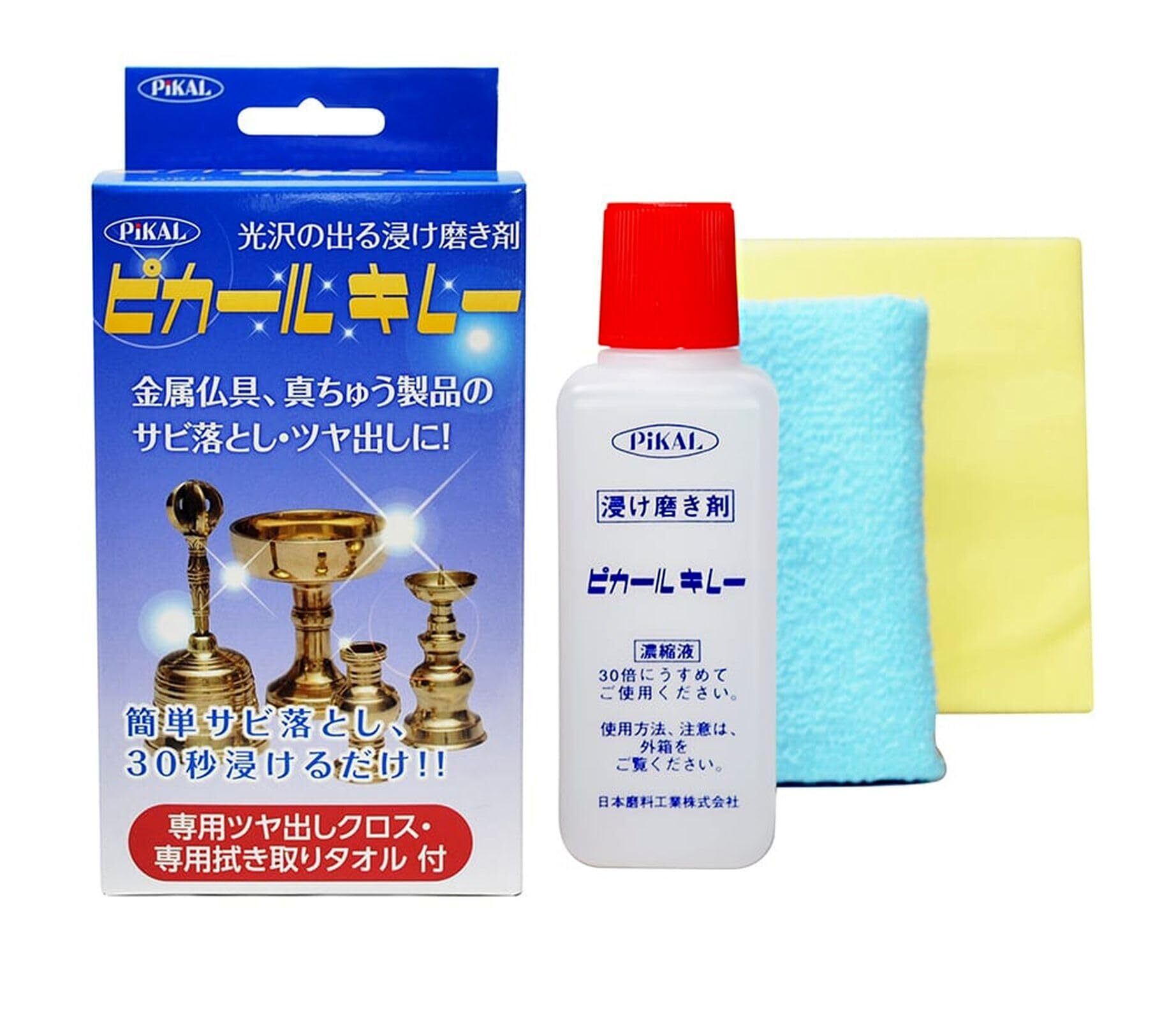 日本磨料工業(Nihon Maryo Kogyo) 浸け磨き用金属クリーナー ピカールキレー 150ml 専用ツヤだしクロス・専用拭き取りタオル付
