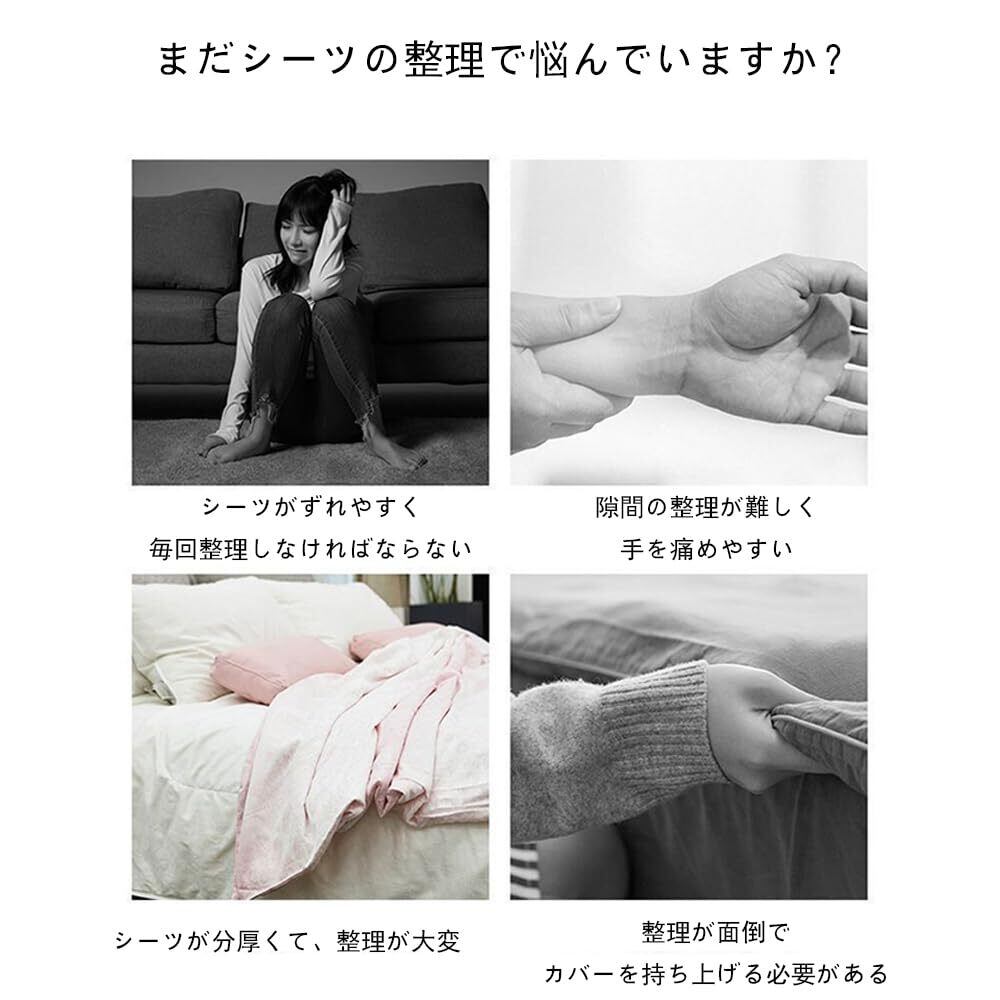 1:【 多角的アプローチで隙間なく整備】頭部・側面・角部・底部の4ポイントをカバー(付属画像参照)。厚手の羽毛布団でも隙間なくシーツを密着させ、ずれ防止率92% を実現。