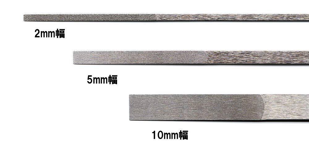 電着部分が先端にかけて徐々に厚みが薄くなり先端は0.5mmと極薄。 良質な炭素工具鋼鋼材(SK材)を削りだした精度の高い母材。 テーパー先端50mmにダイヤが均一に電着していますので、引き・押しだけでなく横方向にも使用できます。 削っている感覚が手に伝わりやすく、リブ・角だし・R加工・平面等々、自在な加工にご使用いただけます。
