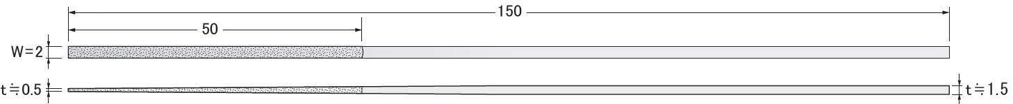 電着部分が先端にかけて徐々に厚みが薄くなり先端は0.5mmと極薄