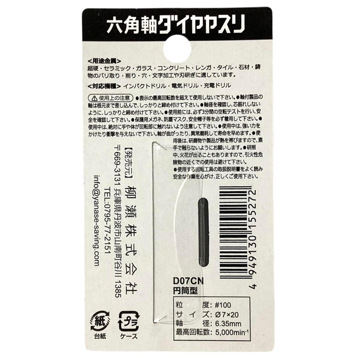 柳瀬 ヤナセ 六角軸ダイヤヤスリ 円筒型 D07CN 金属 超硬 ガラス 石材 切削 刃研ぎ