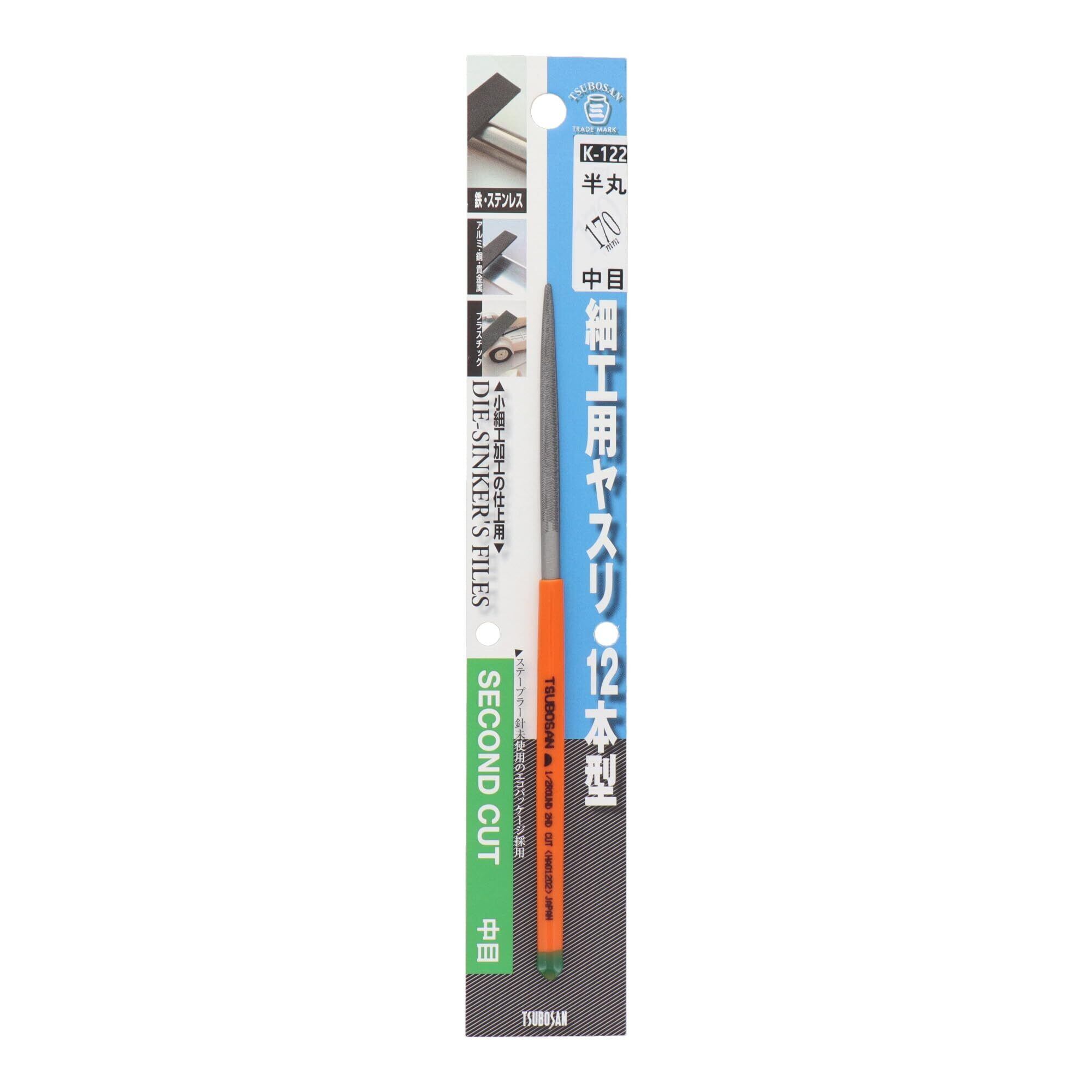 ツボサン 細工用ヤスリ12本型 中目 半丸 170mm K-122