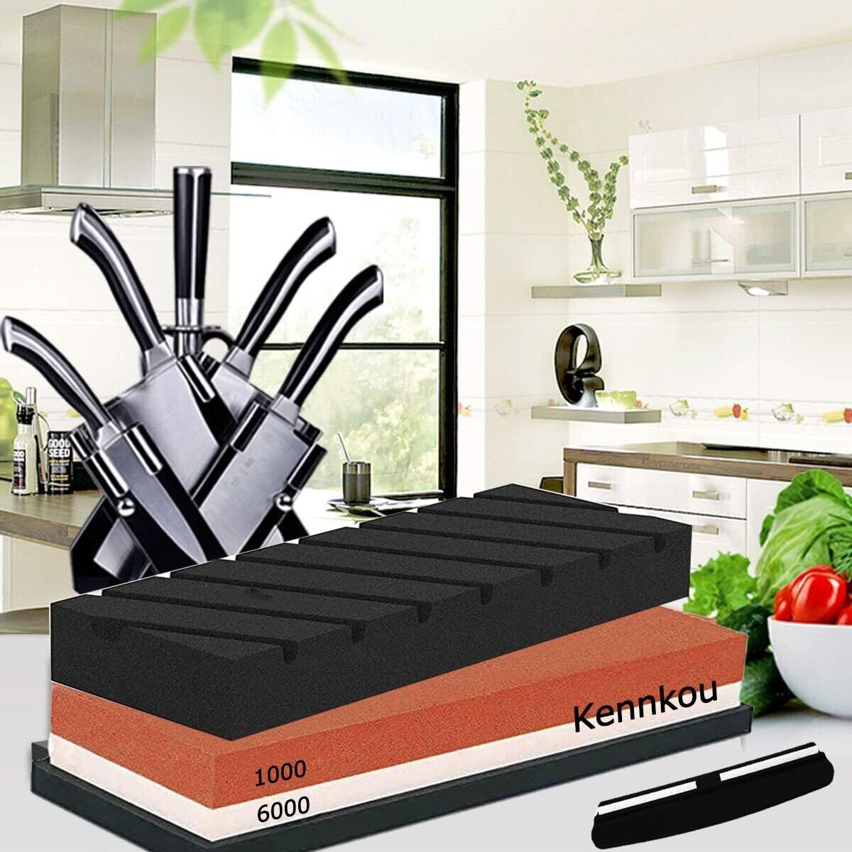 砥石 1000/6000 両面 研ぎ石 家庭用 面直し石 包丁研ぎ 中砥石/仕上砥石 角度固定ホルダー 日本語説明書付き 赤/黒