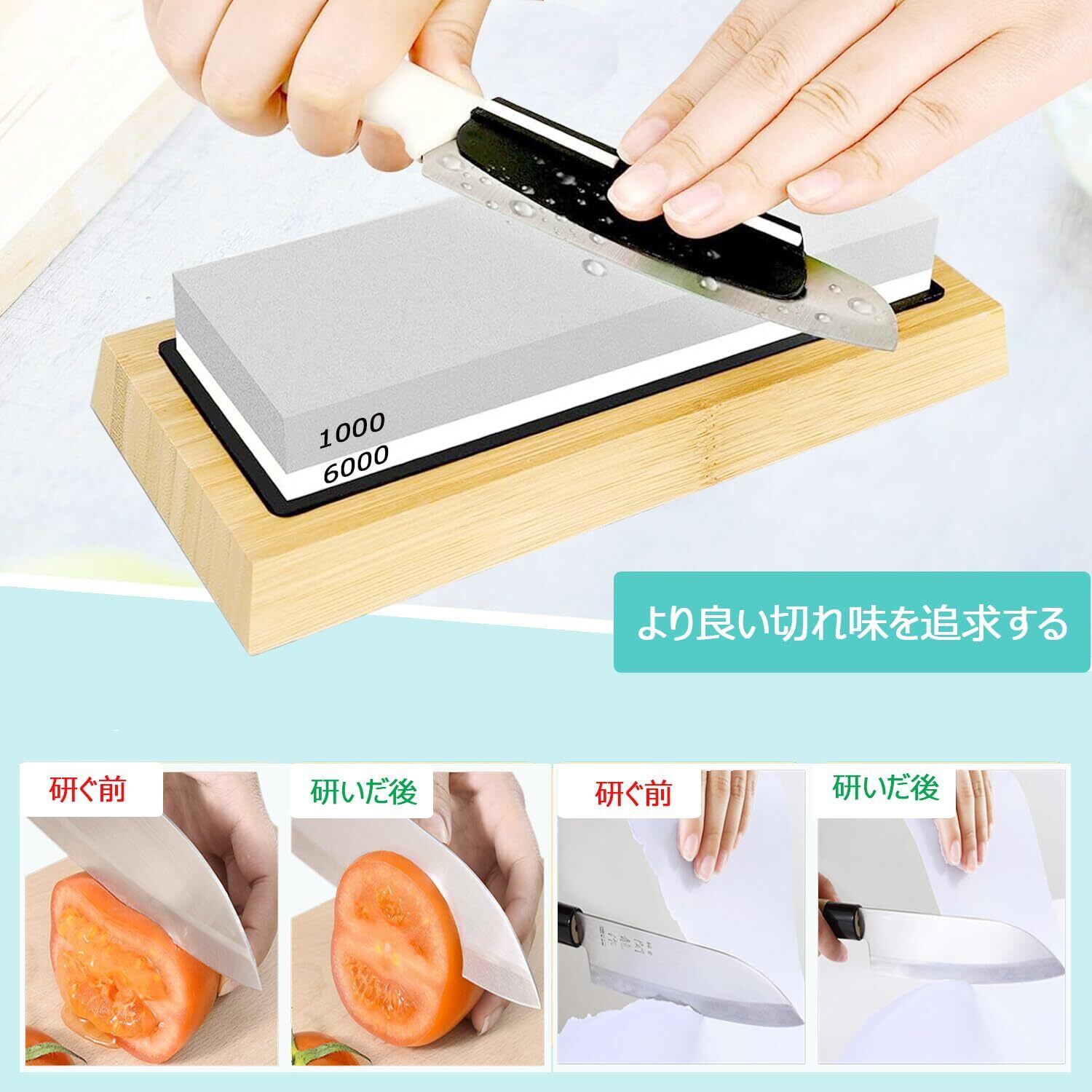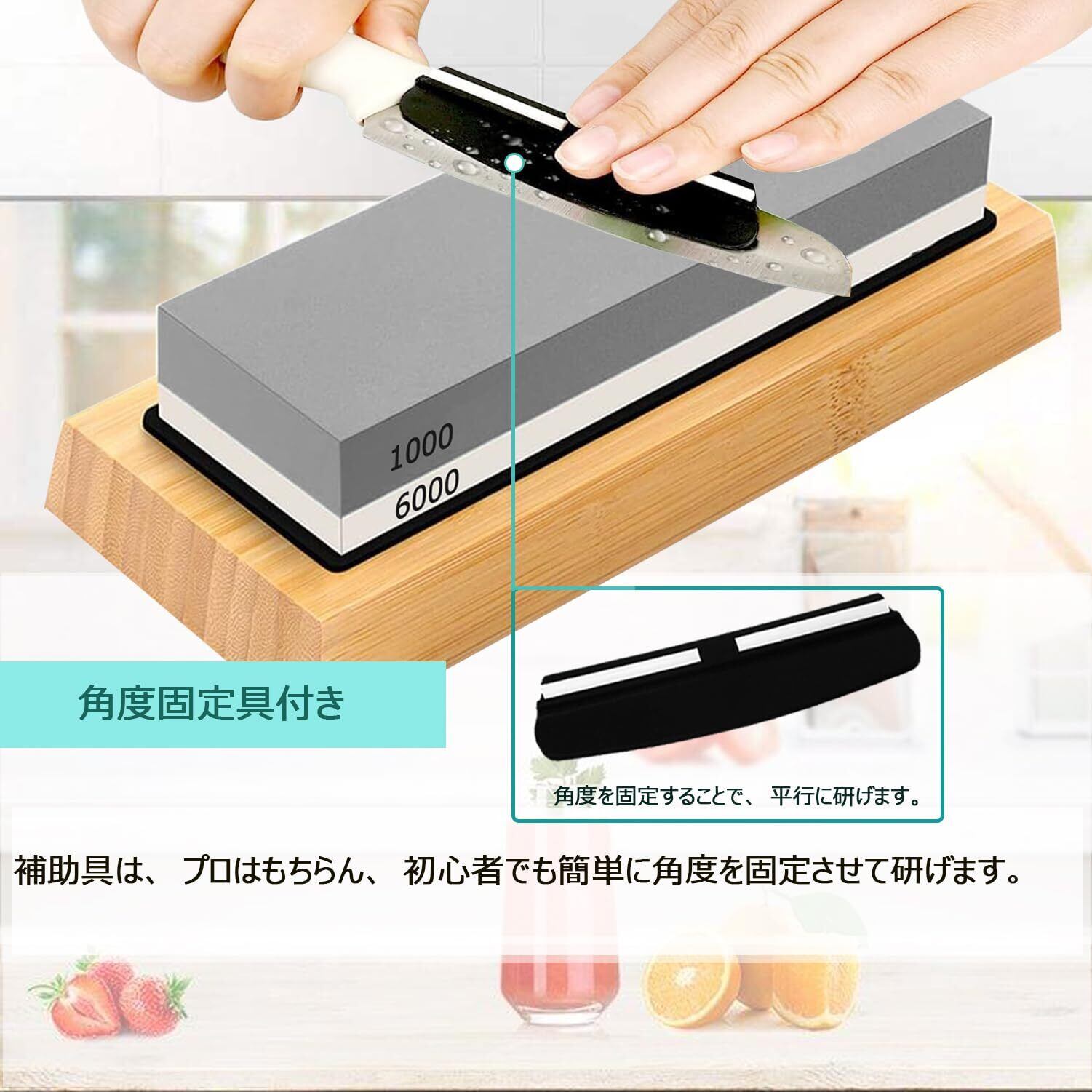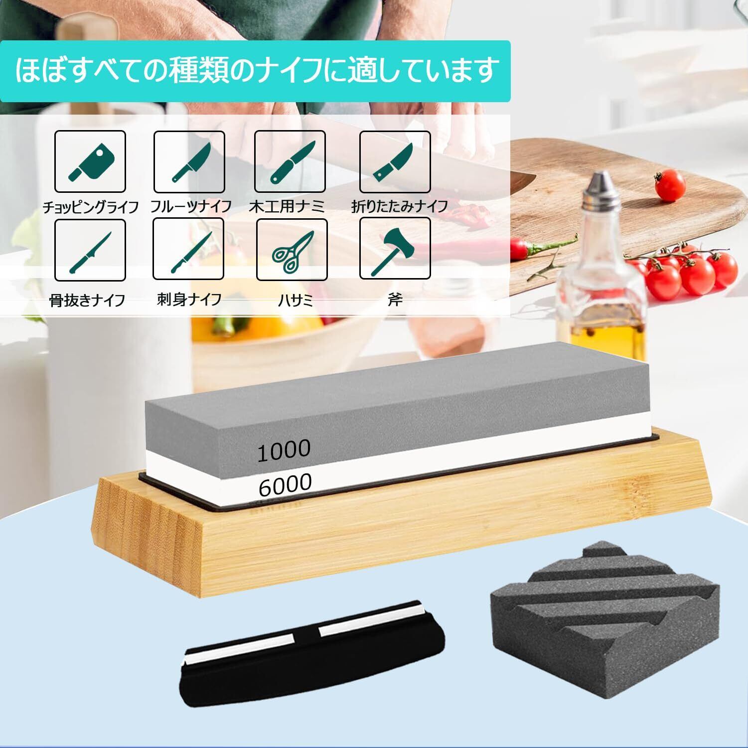 砥石 包丁研ぎ石 #1000#6000 両面砥石 砥石セット 研ぎ石 面直し/竹製台座/滑り止めマット/角度固定器具付き 家庭用中 仕上げ砥石 包丁研ぎに最適 初心者向き