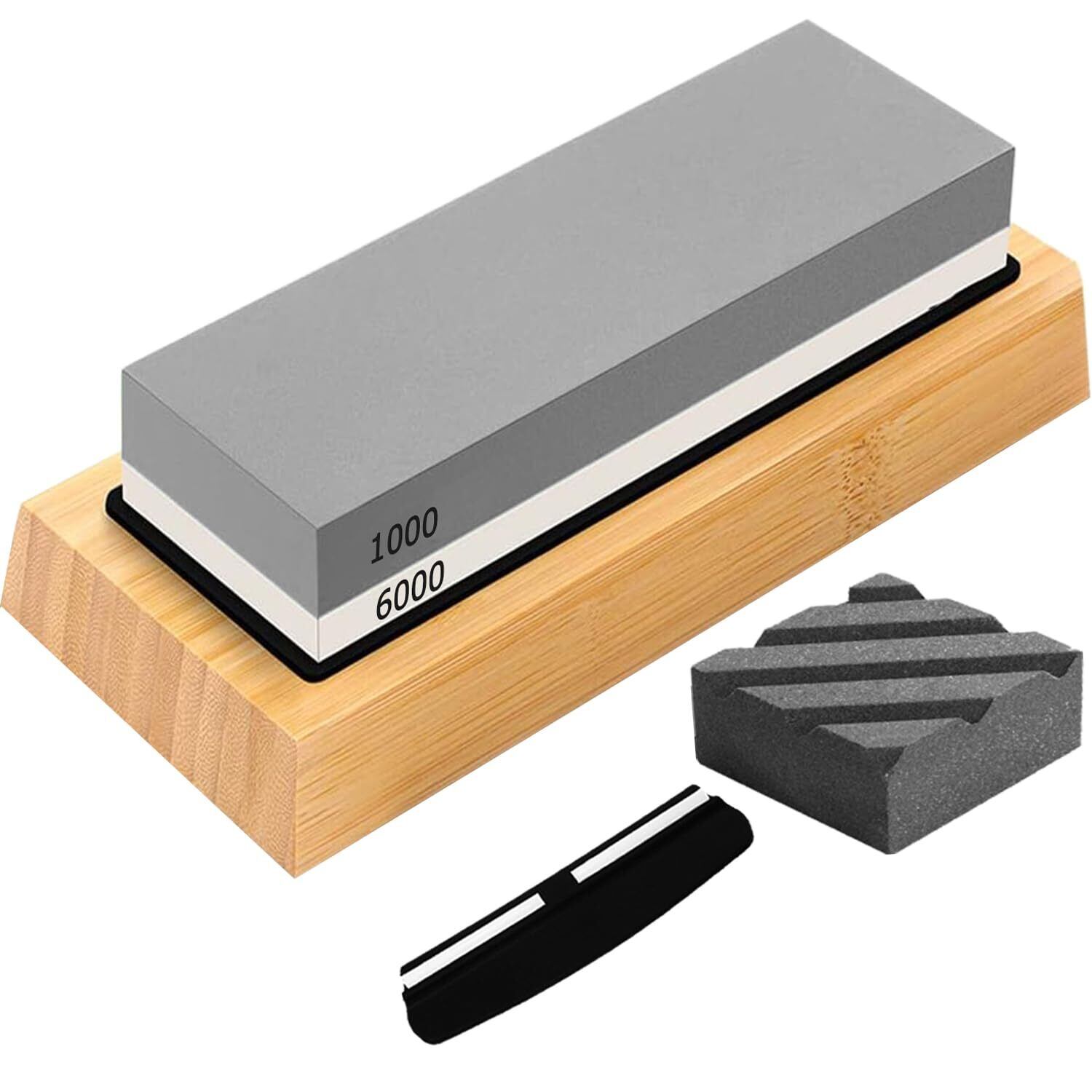 【特価セール】砥石 セット 包丁研ぎ石 #1000#6000 両面 セット 研ぎ石 面直し/竹製台座/滑り止めマット/角度固定器具付き 家庭用中 仕上げ砥石 包丁研ぎに最適 初心者向き