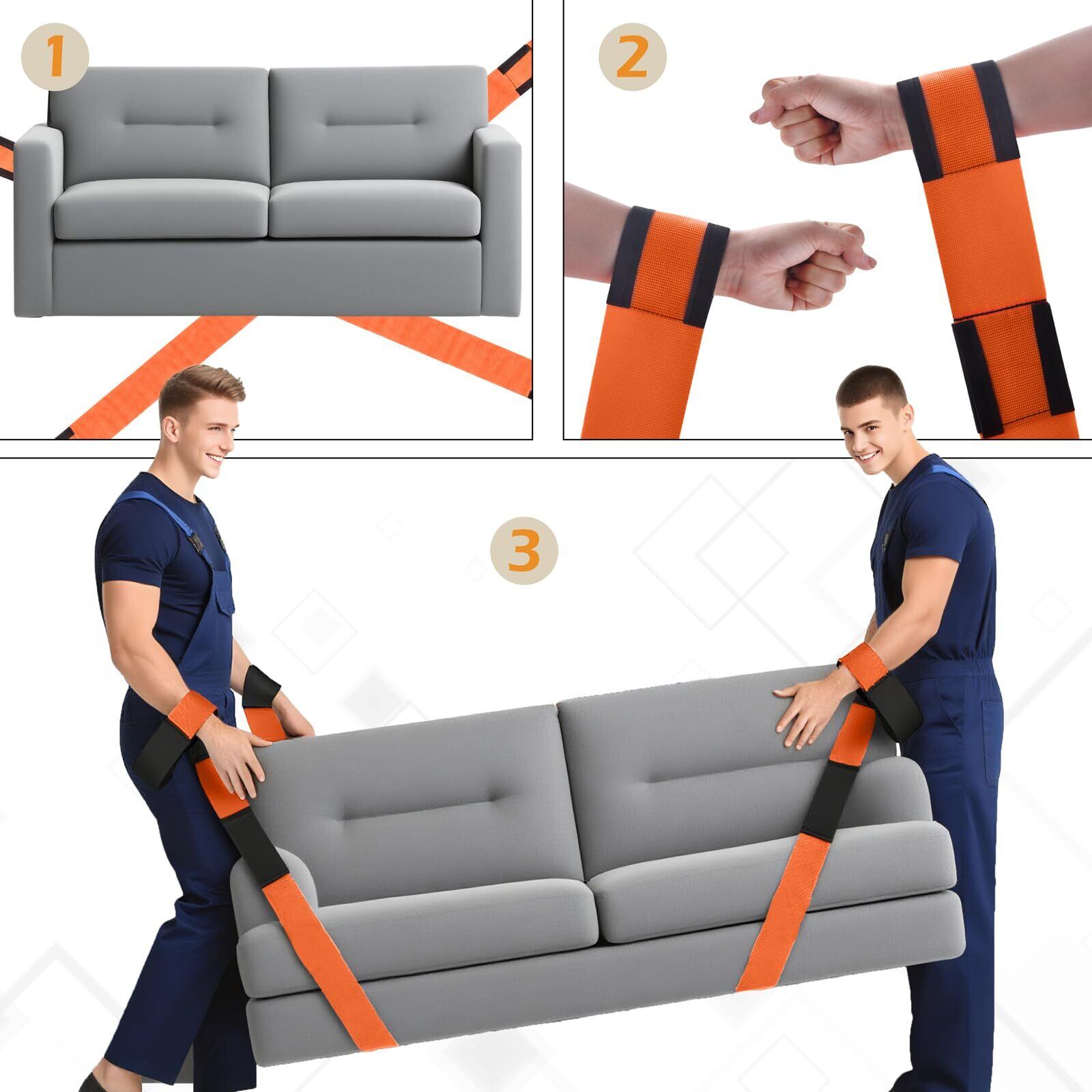【限定セール】TRIWONDER 運搬ベルト 二人用 キャリー べると 引っ越し 家具移動 便利グッズ 重い物を持ち上げる道具 階段 段ボール 背負い 作業用 (03オレンジ + 手袋2組)
